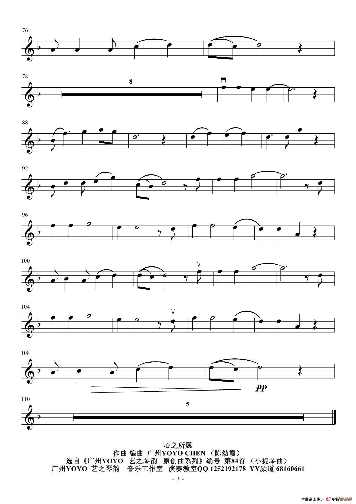 心之所属(广州YOYO作曲演奏小提琴曲)(编号 84)相关五线谱