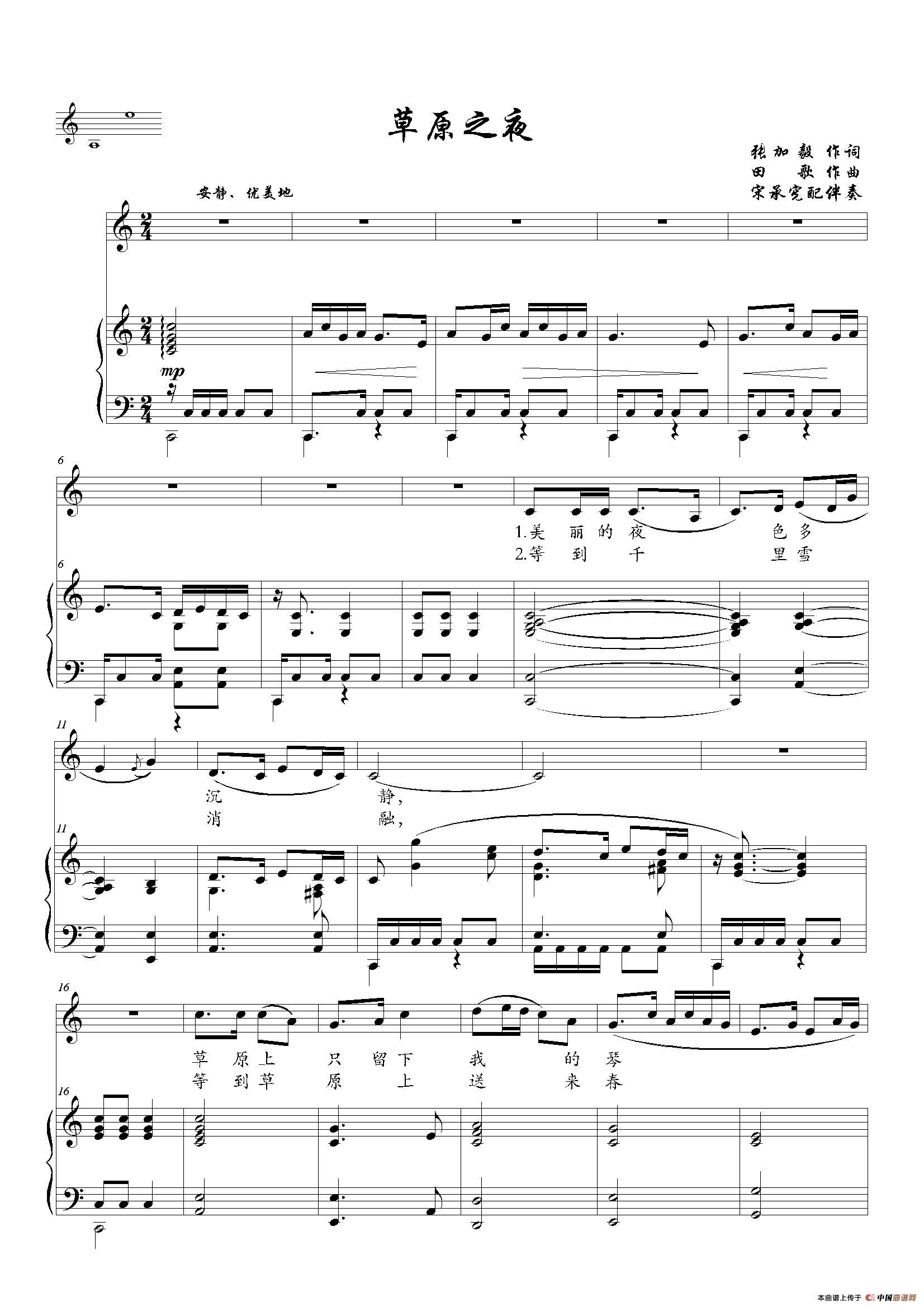 田歌曲谱推荐边防战士之歌(郭正位词 田歌曲)兰兰小妹神圣承诺把心交给祖国(晓光词 田歌曲)小桥(老朱)喀什噶尔女郎歌唱你啊,祖国草原之夜(李健 樊冲 张加毅词 樊冲 田歌曲)摇篮曲(陈克正词 田歌曲)红旗永远扛在肩(二声部版)没有走完的路草原之夜(老人适用)今晚夜色多好边疆处处赛江南新疆姑娘(瞿琮词 田歌曲)草原牧歌边疆处处赛江南(电影《军垦战歌》插曲)祖国大地任我走(倪维德词 田歌曲)大中国的一个大新疆中华这么美