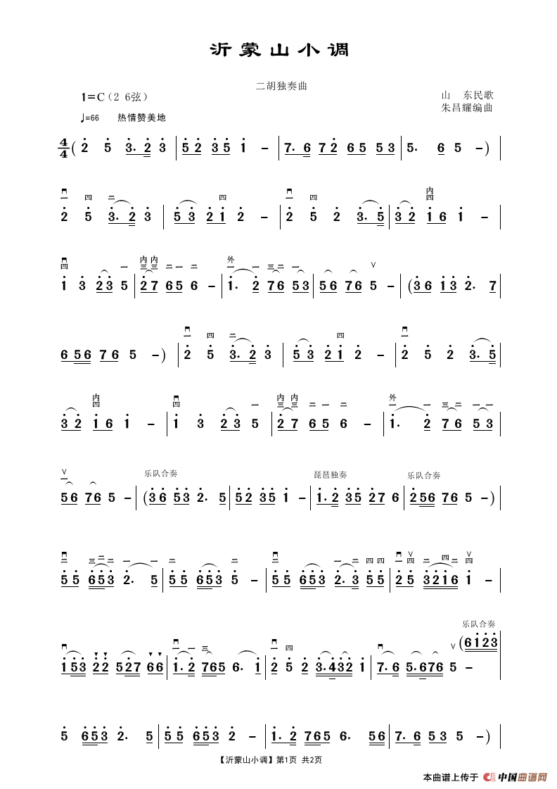 朱昌耀编曲曲谱推荐苏南小曲(二胡)拔根芦柴花(朱昌耀二胡演奏)浏阳河(二胡独奏曲)扬州小调(章祥兴制谱版)杨柳青(二胡独奏、朱昌耀版)(小小张制谱)好一朵茉莉花(二胡独奏曲)扬州小调(民乐合奏总谱)苏南小曲(二胡独奏谱)葬花吟(章祥兴制谱版)江南小景扬州小调(二胡独奏曲)兰花花长相思(二胡独奏)葬花吟(二胡G调演奏版标弓指法)月儿弯弯照九州(朱昌耀编曲、精益制谱版)美丽的姑娘(江苏民歌、朱昌耀编曲)美丽的姑娘(二胡独奏)苏南小曲(扬琴伴奏谱)远方的客人请你留下来(二胡 )拔根芦柴花(二胡曲谱)