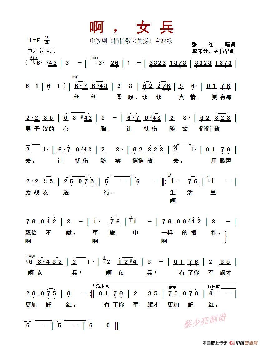 啊,女兵(电视剧《悄悄散去的雾》主题歌)相关五线谱