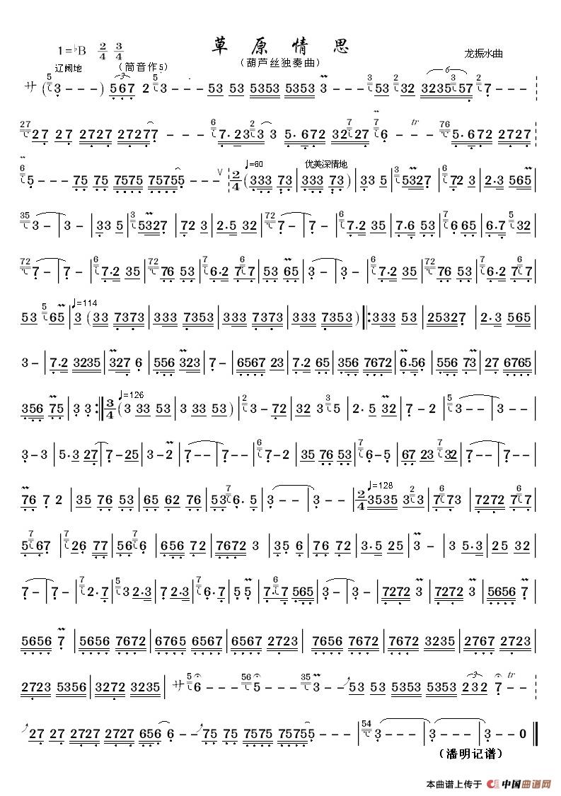 草原情思(葫芦丝曲)相关五线谱