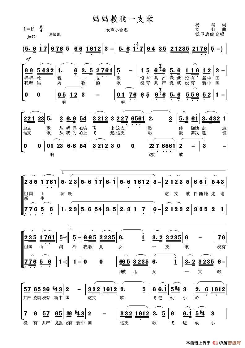 妈妈教我一支歌(女声小合唱)相关五线谱