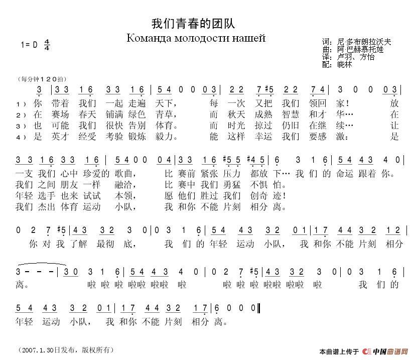 阿·巴赫慕托娃曲谱推荐[俄]20流星雨疲劳的潜艇麦穗沙沙相拥而坐的老兵你为什么叫住我Зачем меня окликнул ты(中俄简谱)小雄鹰展翅学飞行[俄]15爱情、共青团与春天前沿阵地(苏联电影《莫斯科保卫战》插曲)爱情、共青团与春天[俄]82向那伟大的年代致敬(合唱)[俄]10想当年多么年轻告别,莫斯科До свиданья Москва(中俄简谱)小小无名地[前苏联]马格尼特卡(苏维埃钢城颂歌)[俄]80地质队员(合唱)[前苏联]马格尼特卡(苏维埃钢城颂歌)小鸟还在唱歌唱动荡的青春(合唱)[俄]歌唱动荡的青春(苏联影片《在那一边》插曲)[俄]18甲板上跳舞的姑娘