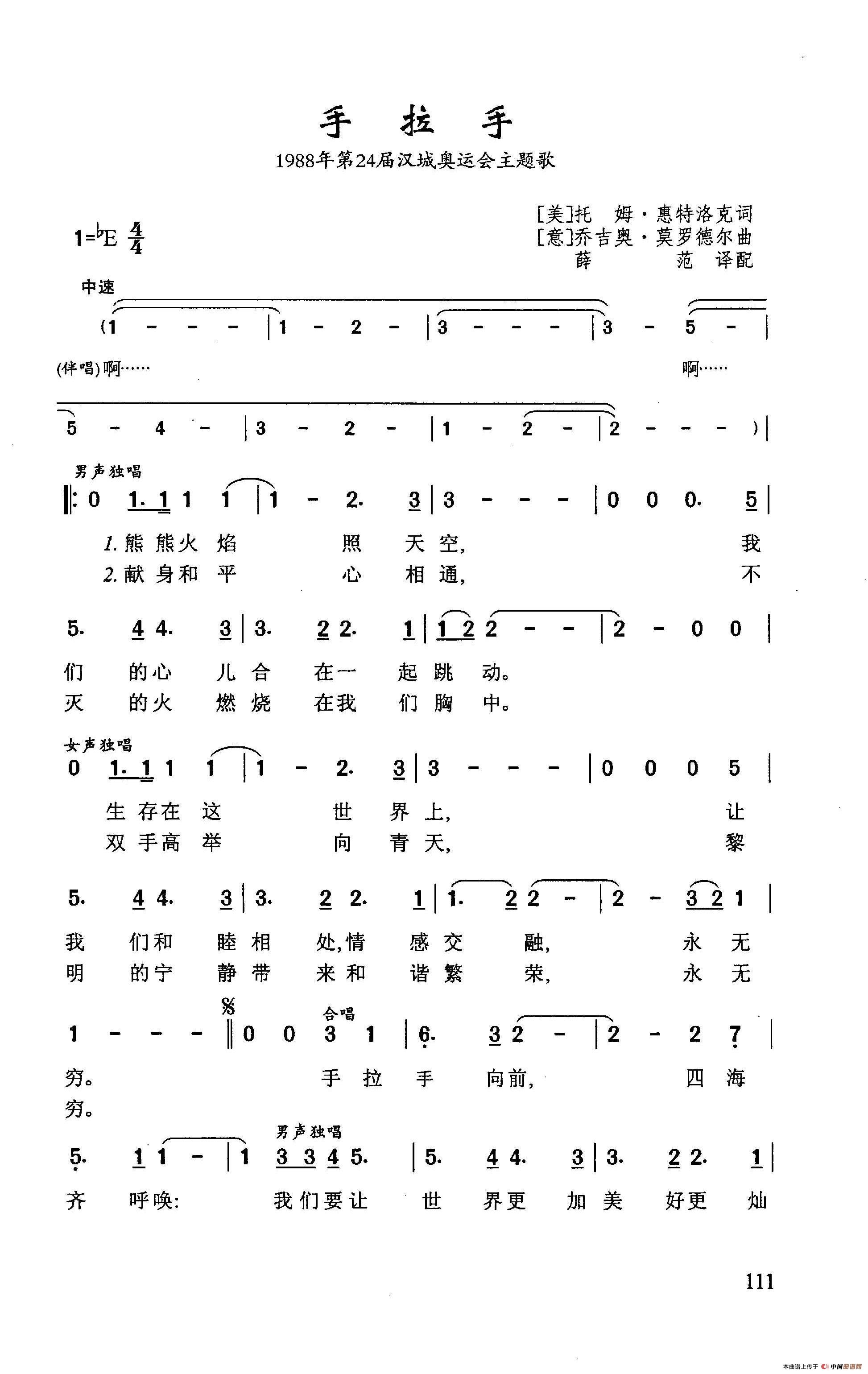 手拉手相关五线谱