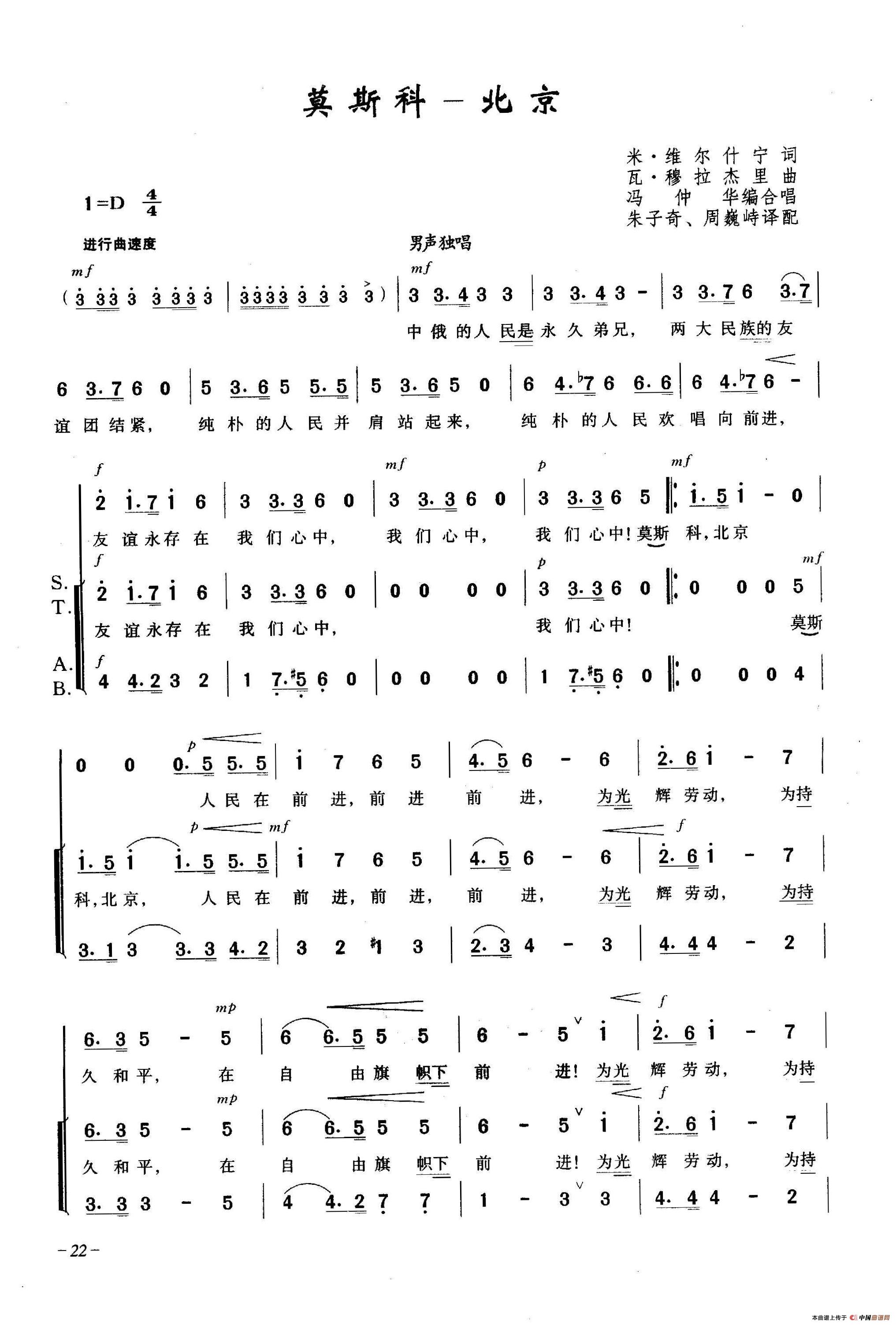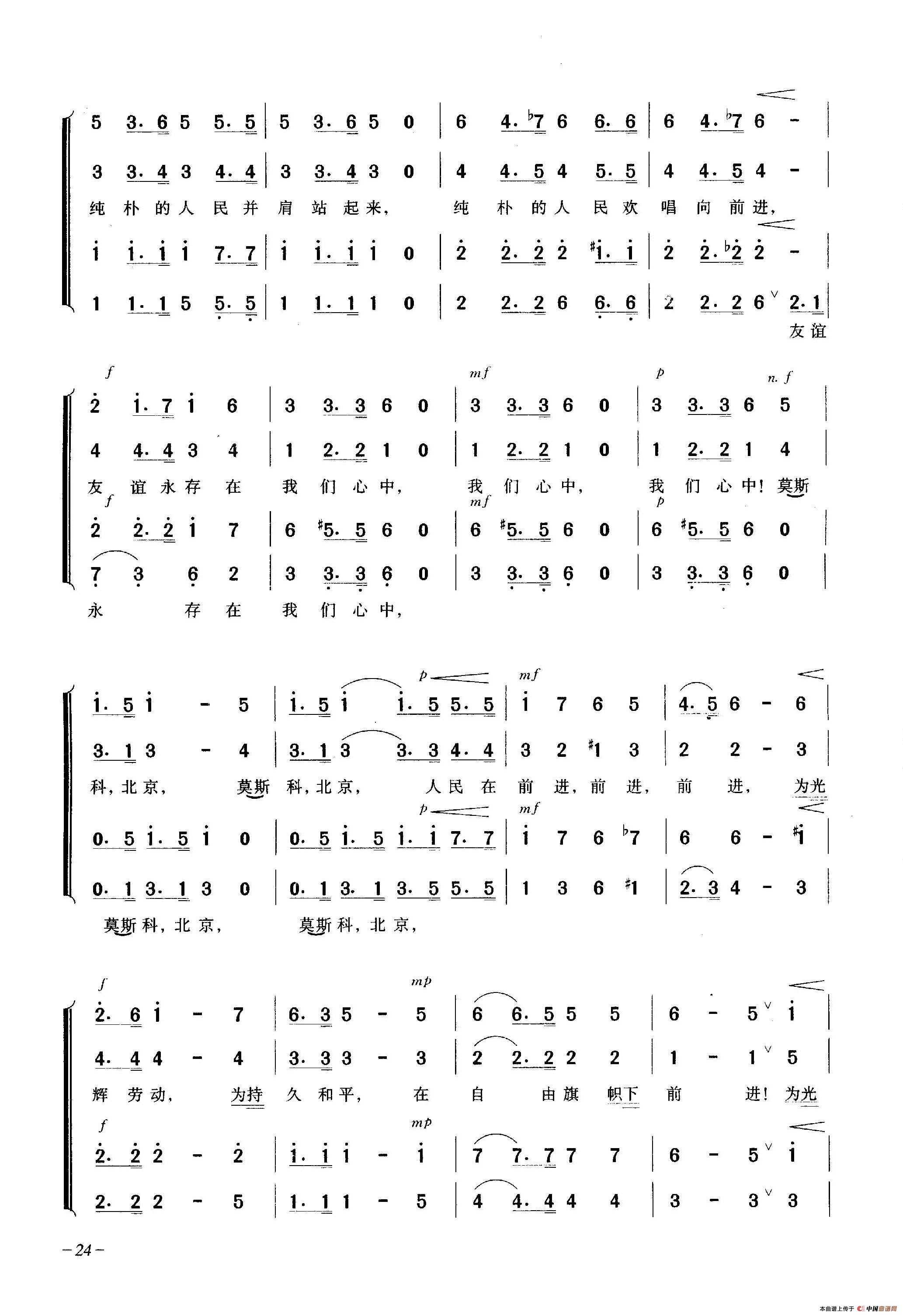 莫斯科-北京(合唱)相关五线谱