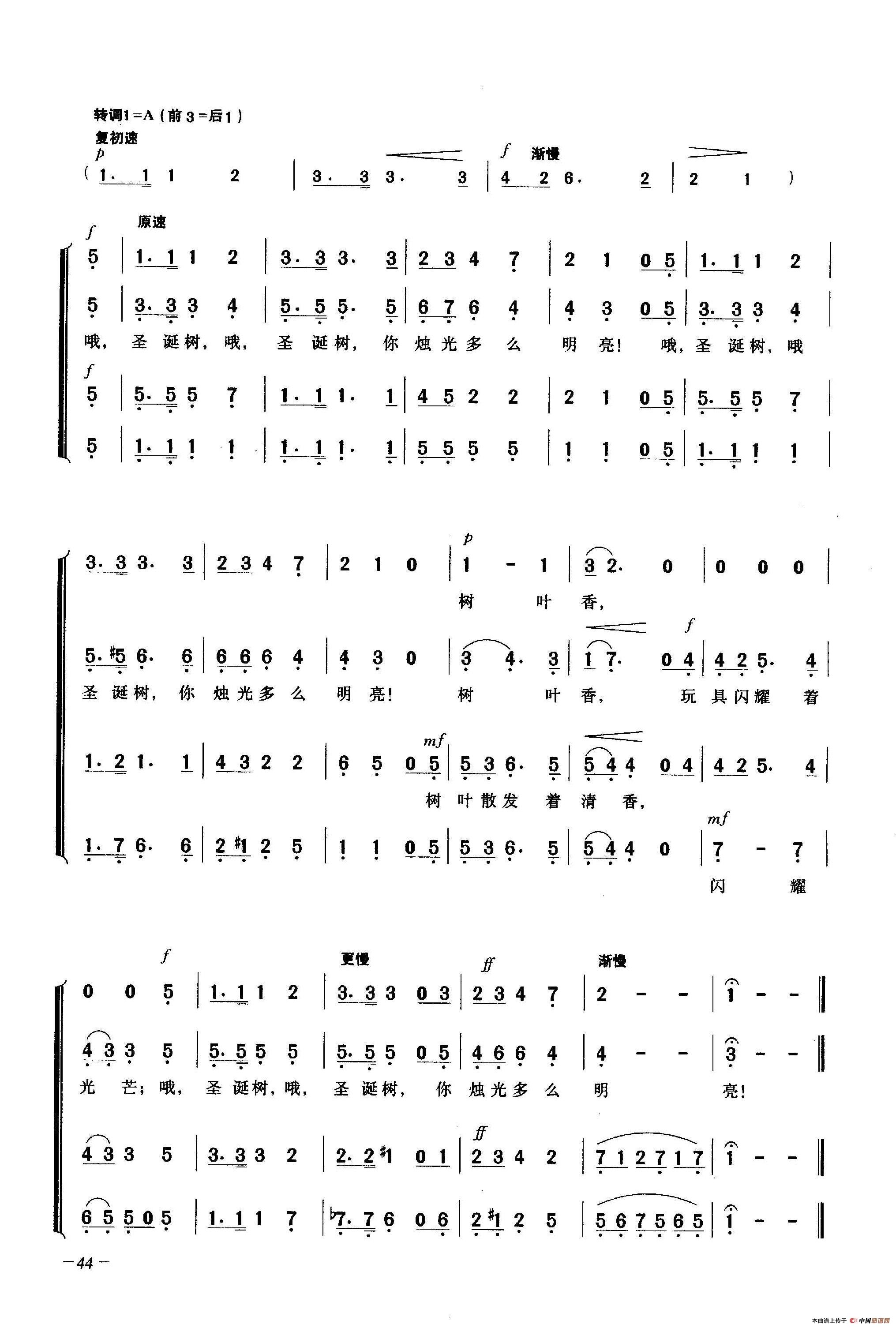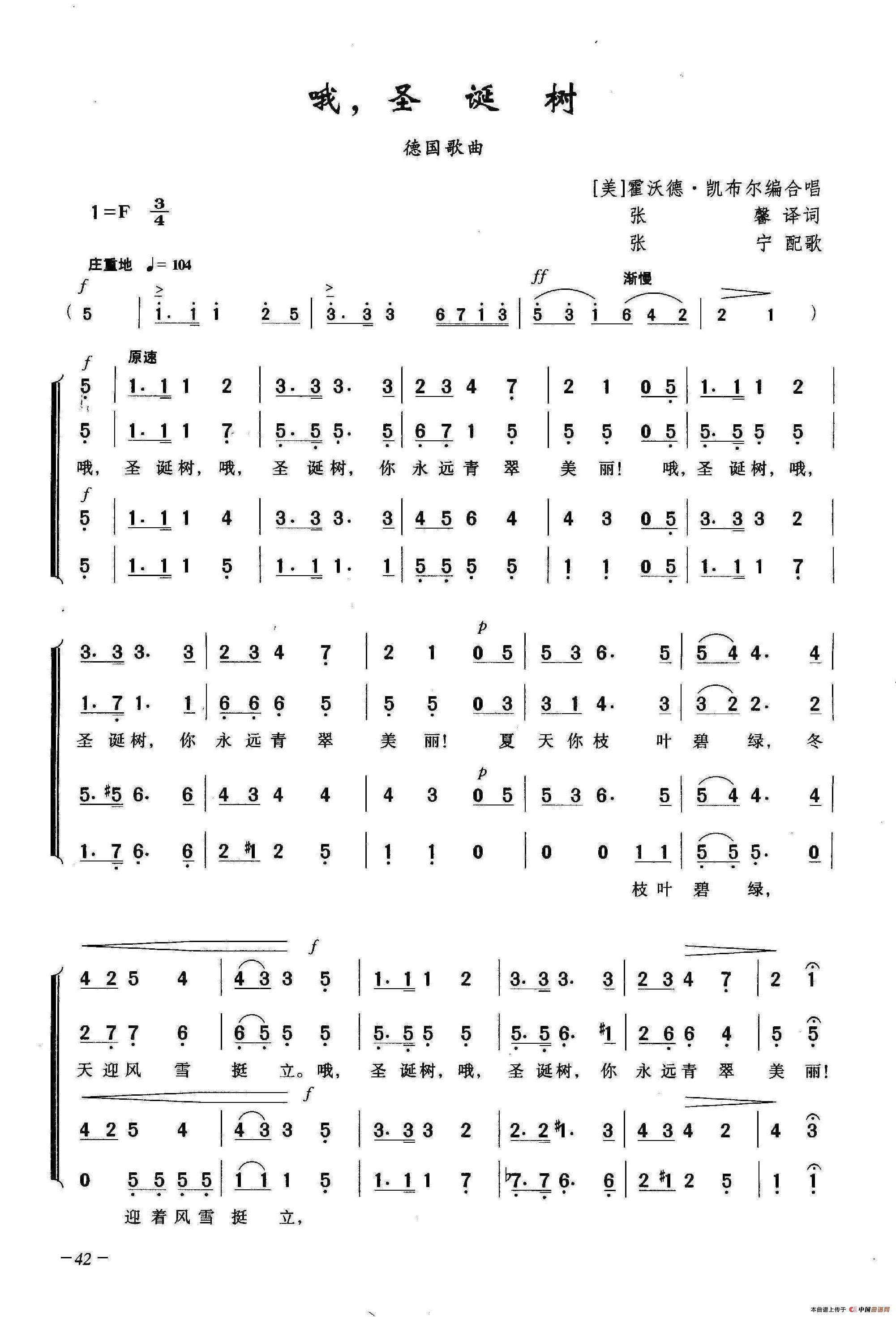 哦,圣诞树(合唱)相关五线谱