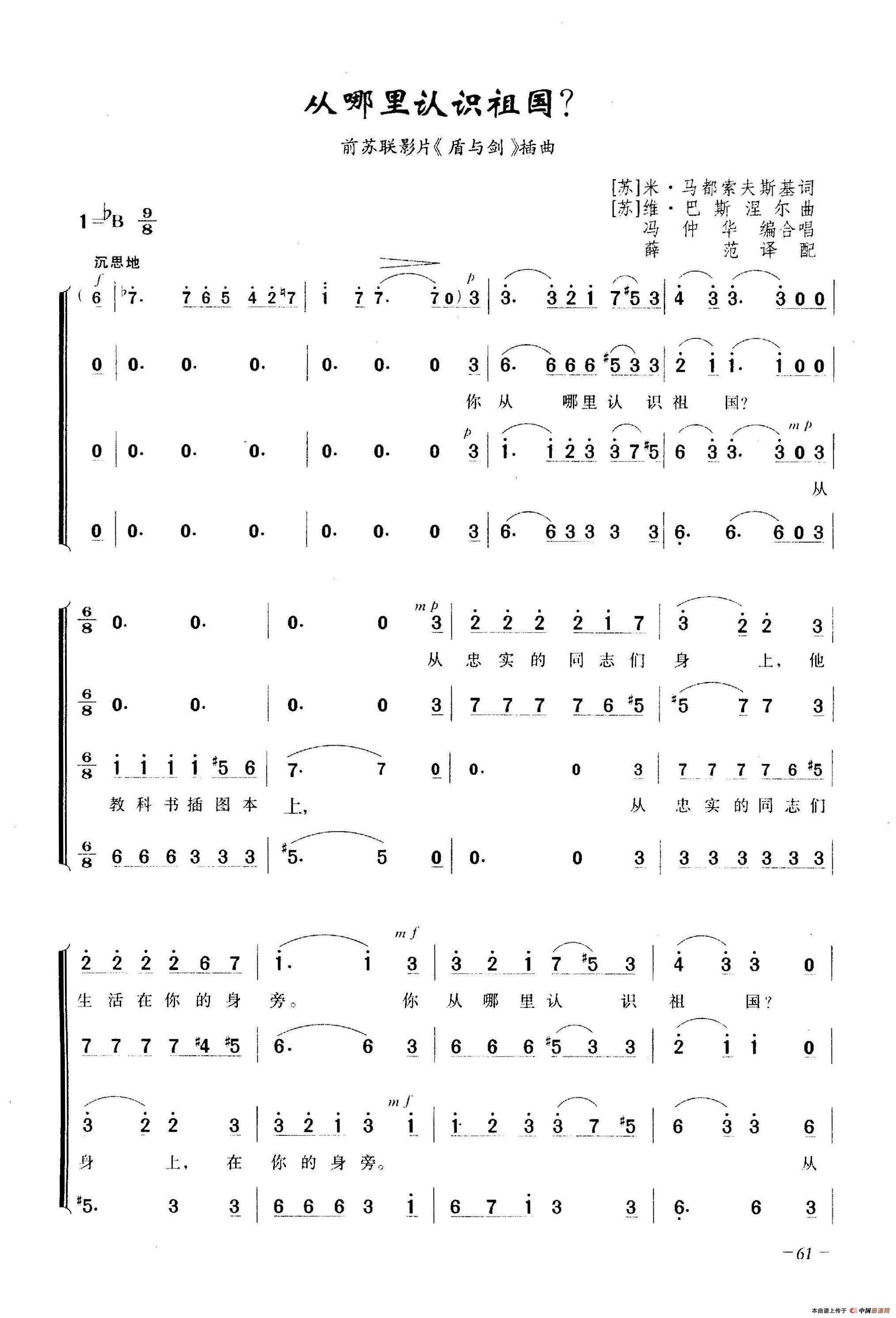 从哪里认识祖国(合唱)相关五线谱