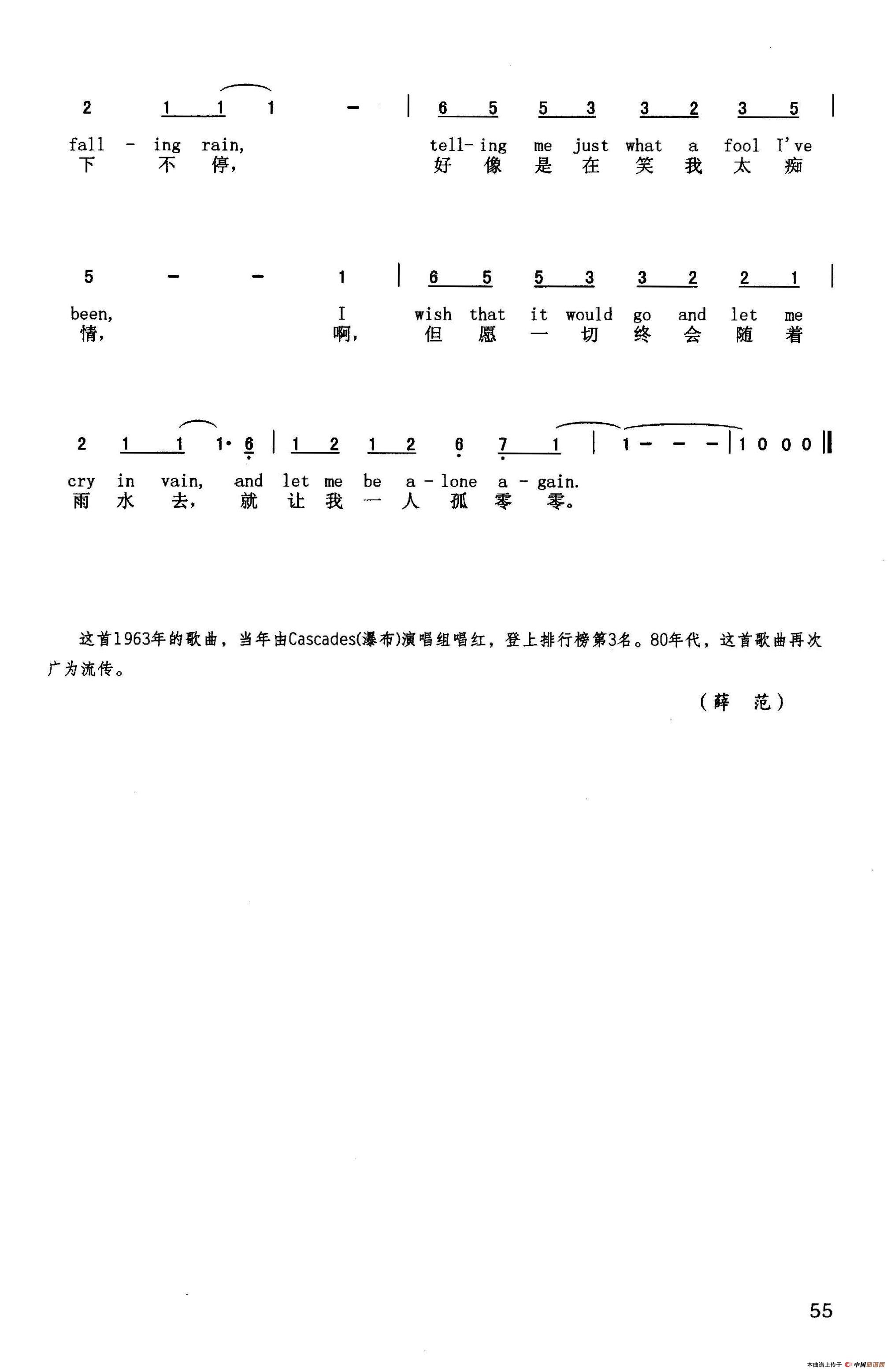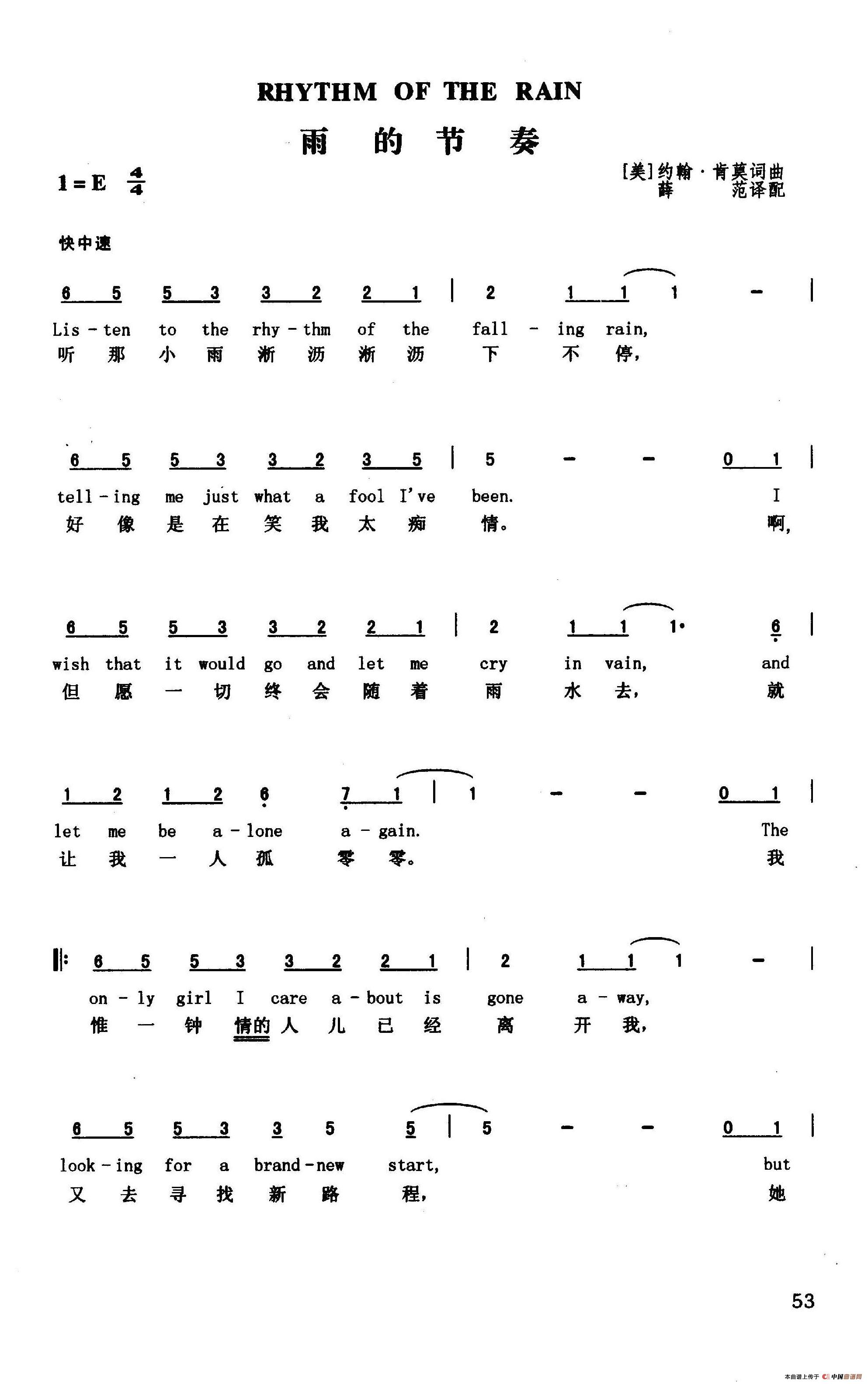 雨的节奏(英汉)相关五线谱