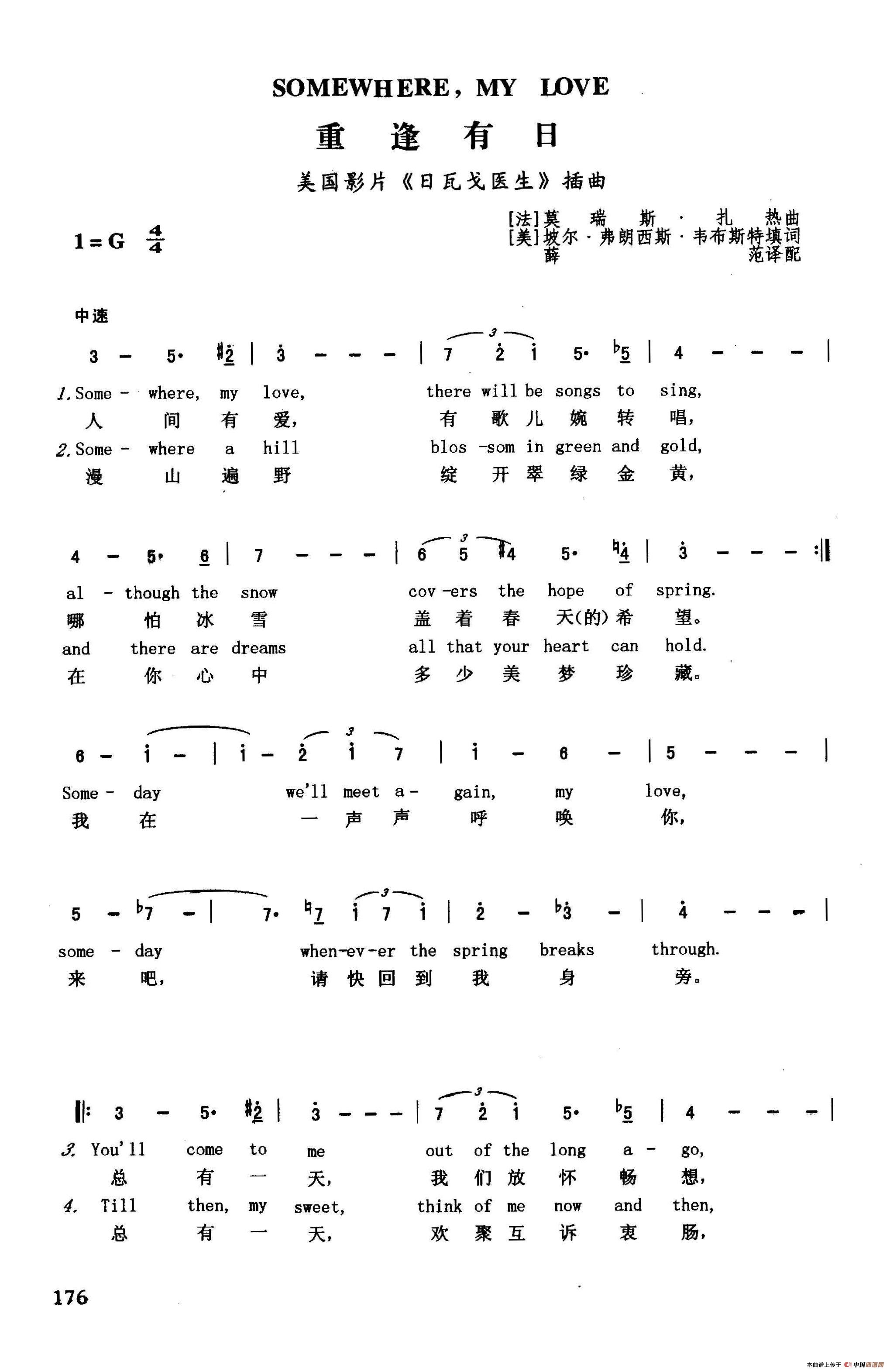 重逢有日(英汉)(美国影片《日瓦戈医生》插曲)相关五线谱