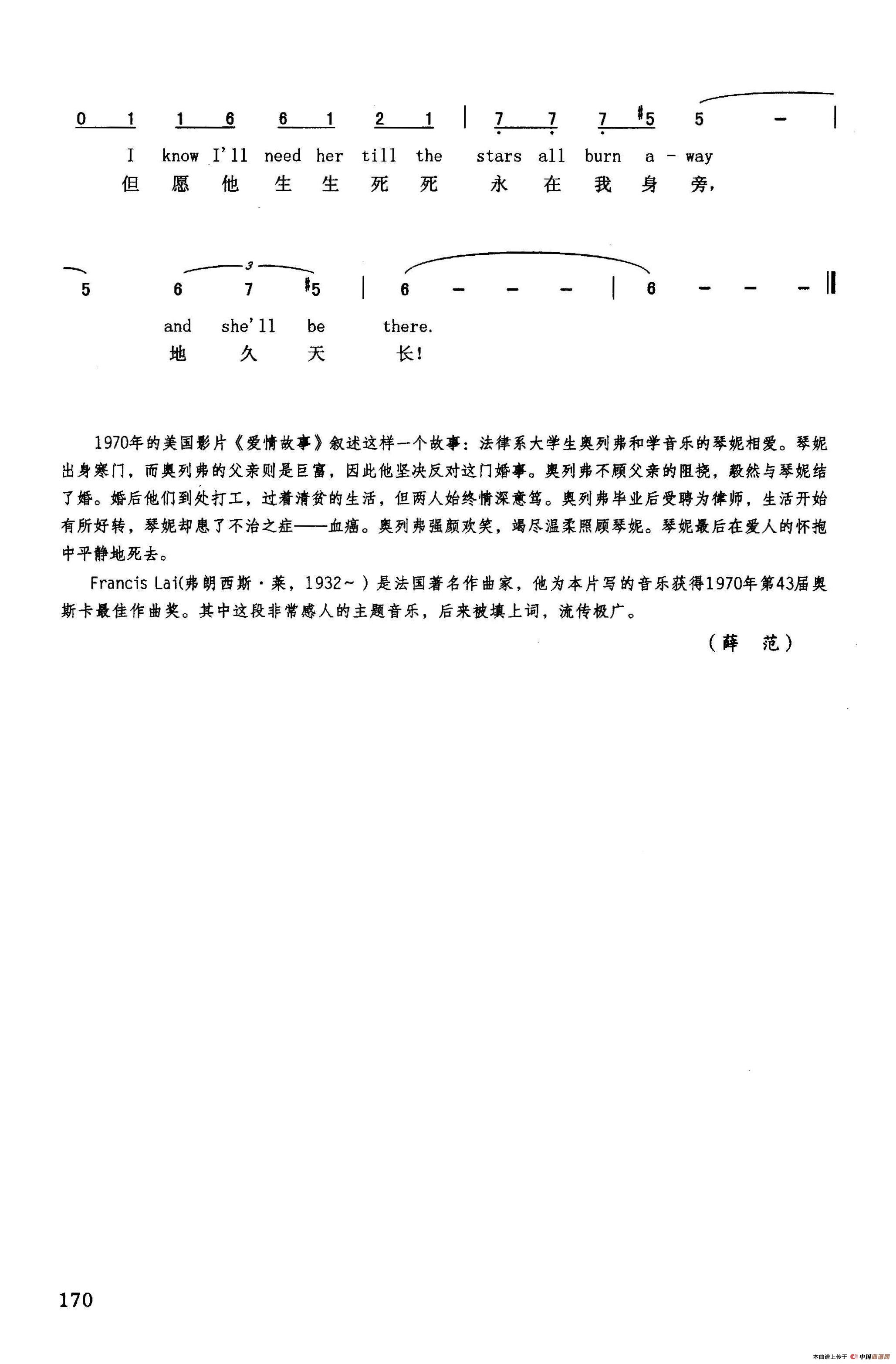 爱情故事(英汉)(美国影片《爱情故事》插曲)相关五线谱