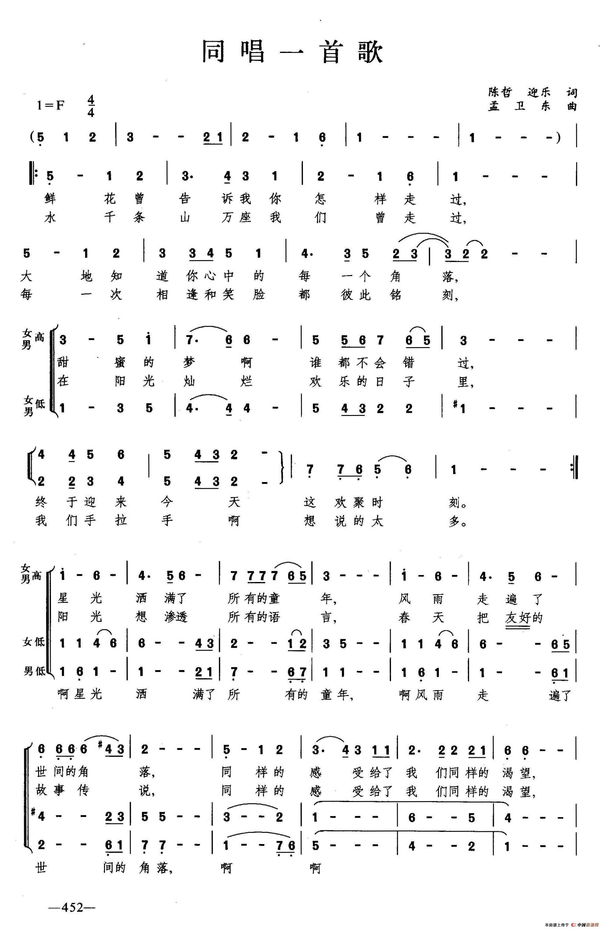 同唱一首歌(合唱)相关五线谱