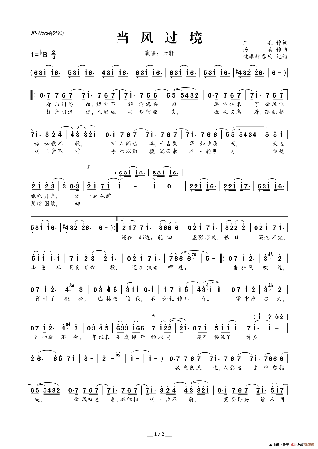 汪峰 当我想你的时候 吉他谱(无限延音编配)