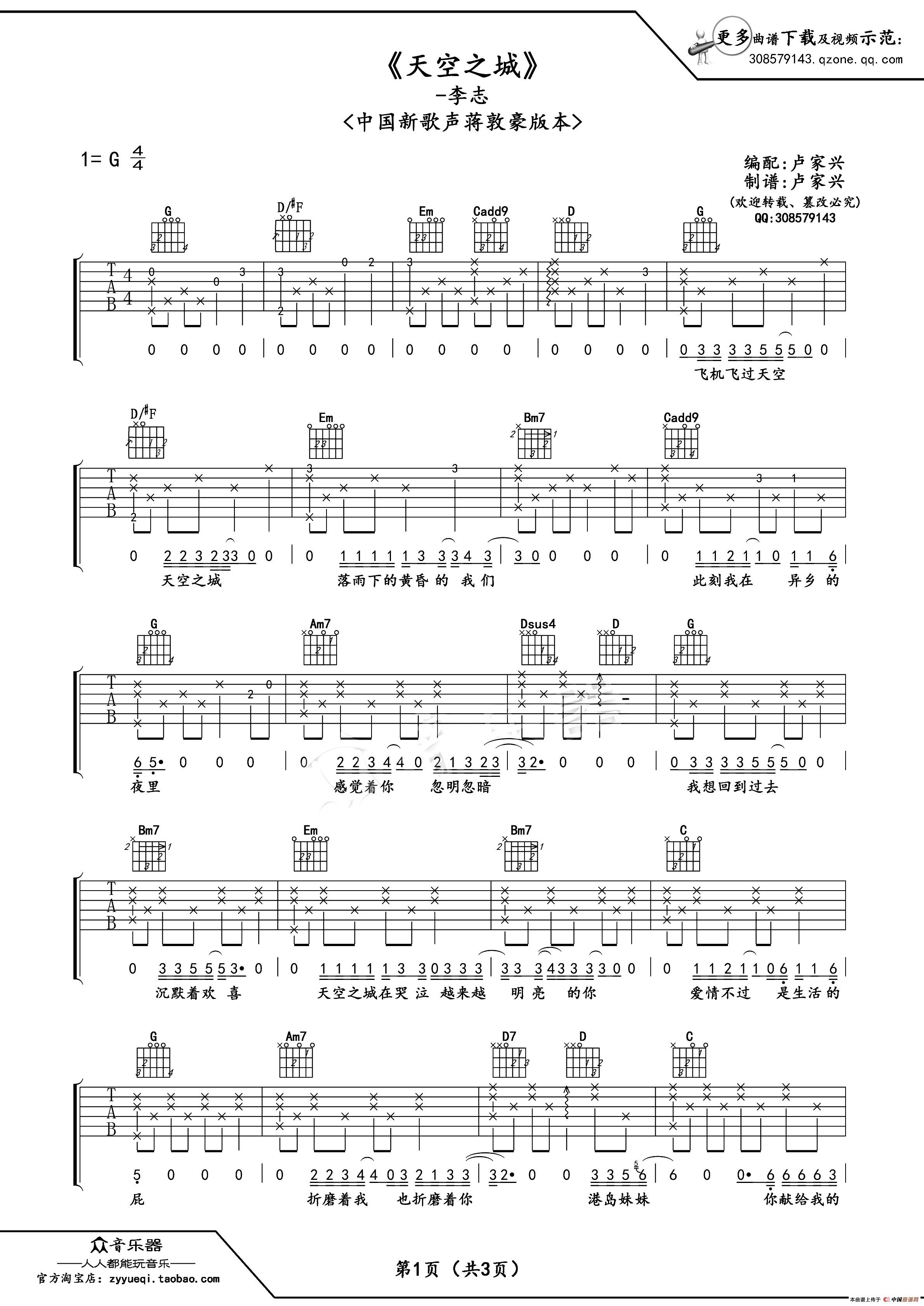 天空之城(吉他谱 六线谱蒋敦豪版本中国新歌声)