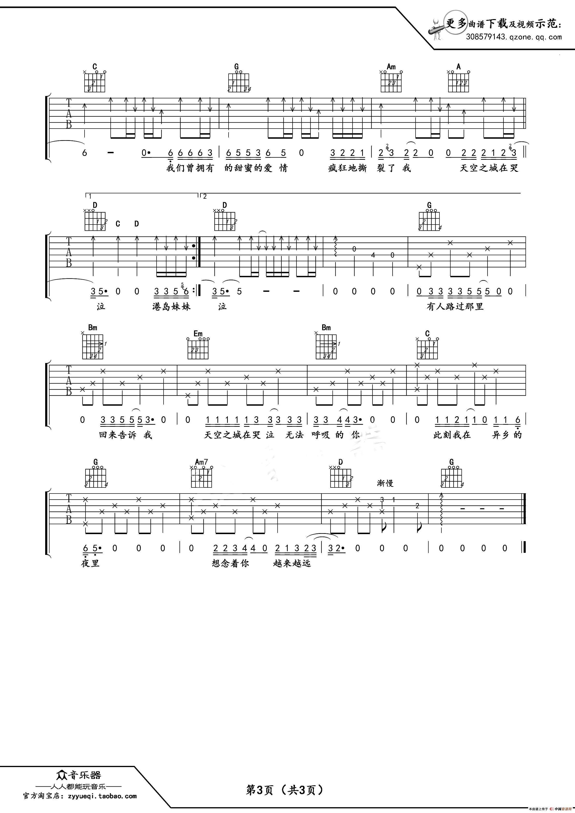 天空之城(吉他谱 六线谱蒋敦豪版本中国新歌声)相关五线谱