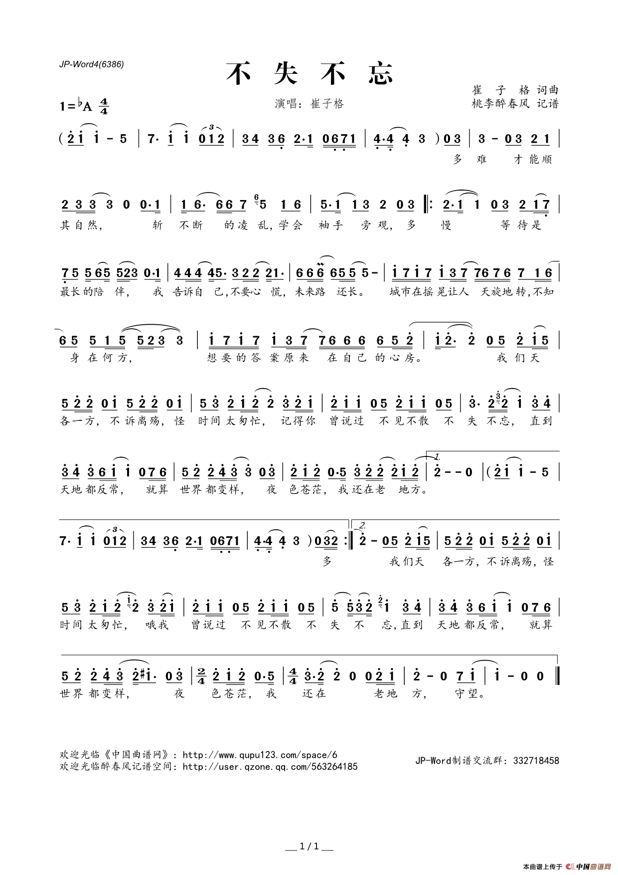 不失不忘相关五线谱