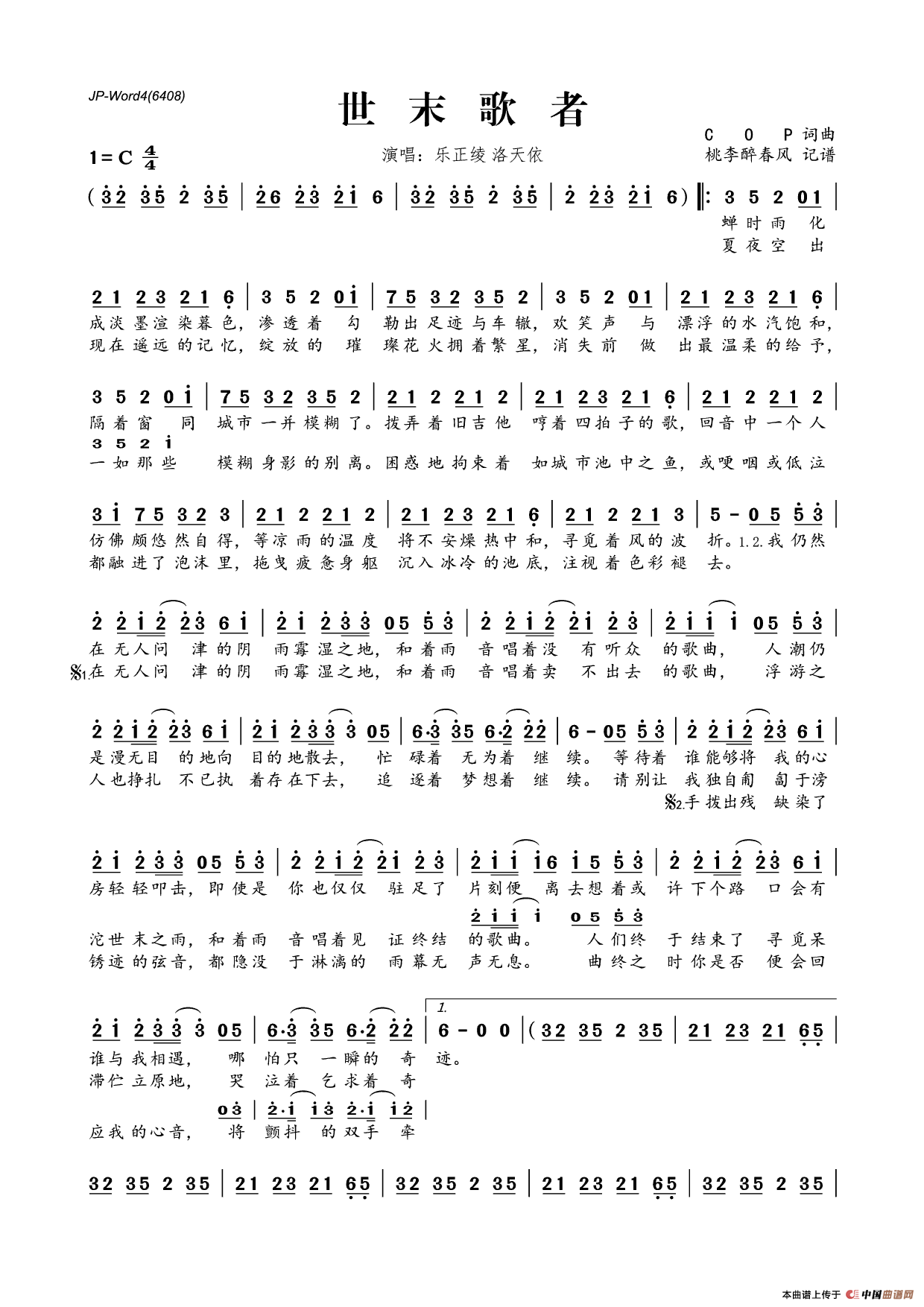 世末歌者相关五线谱