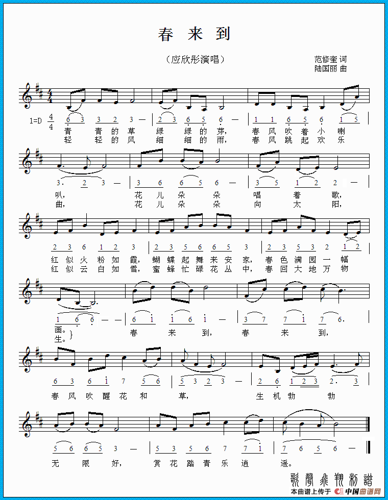 春来到(范修奎词 陆国丽曲、简线对照谱)