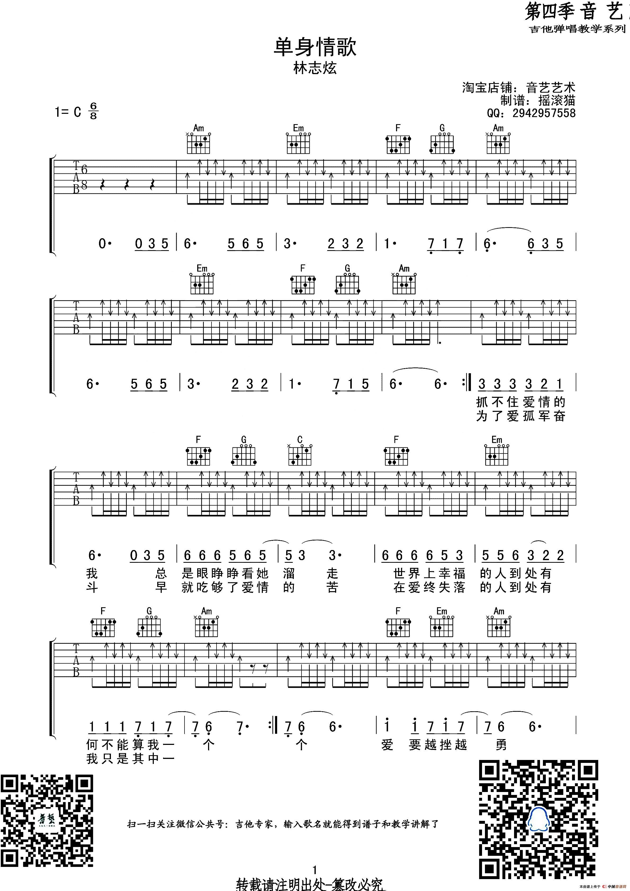 单身情歌(吉他六线谱)