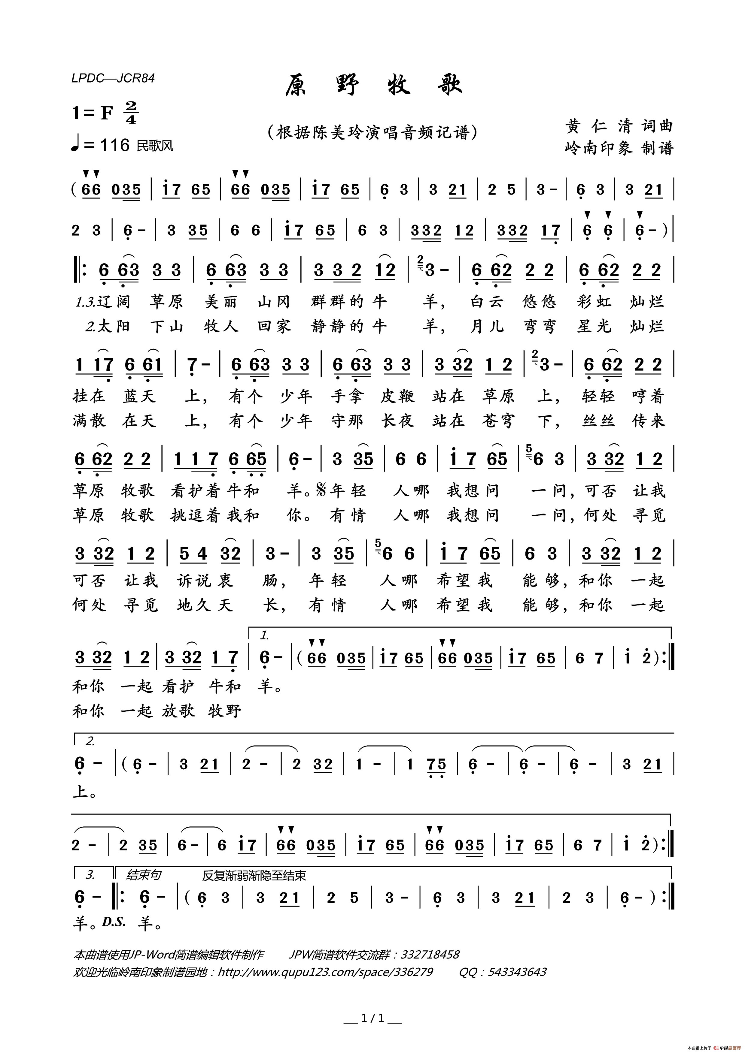 黄仁清曲谱推荐路边摊的心声梦里山河邓丽君演唱金曲:别把眉儿皱草原牧歌(又名:原野牧歌)等邮差乡愁(黄仁清词 黄仁清曲)情愁(成凤词 黄仁清曲)情哥情妹过新年成长的岁月假如(梦之旅演唱版)你潇洒,我漂亮(台湾影片《你潇洒,我漂亮》主题歌)燃烧吧,火鸟(台湾电影《燃烧吧,火鸟》主题歌)改变(成凤词 黄仁清曲)相爱不容易原野牧歌你潇洒我漂亮(带和弦)说说笑笑原野牧歌君无愁(谢采妘演唱版)伤心的所在