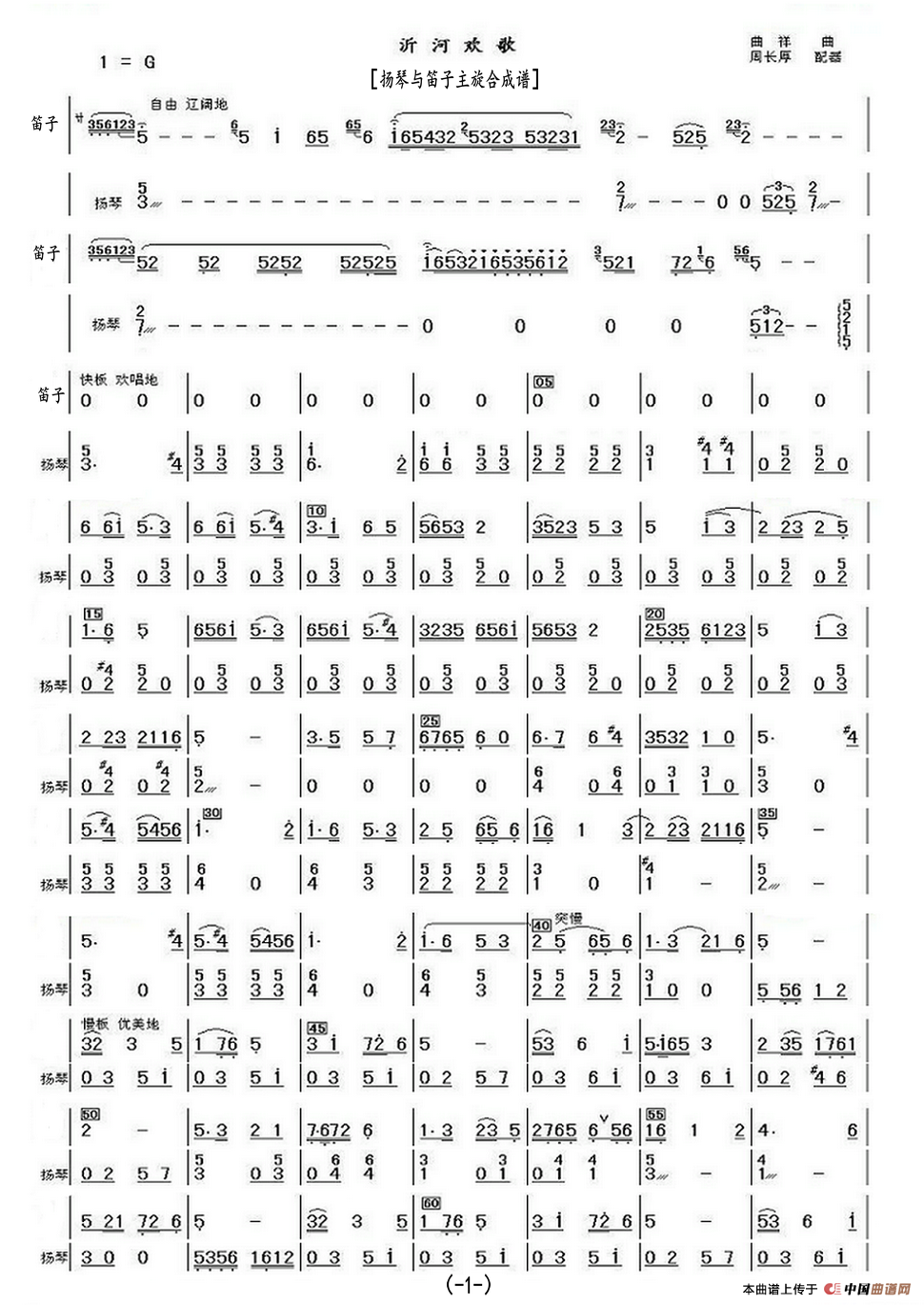 沂河欢歌(扬琴与笛子主旋合成谱)相关五线谱