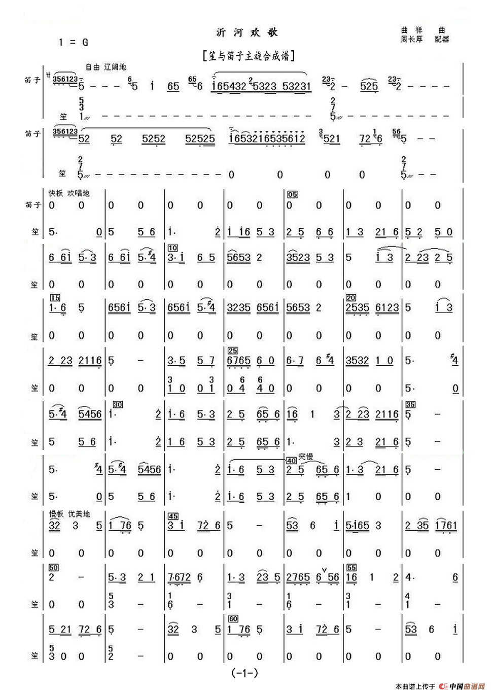 沂河欢歌(笙与笛子主旋合成谱)相关五线谱