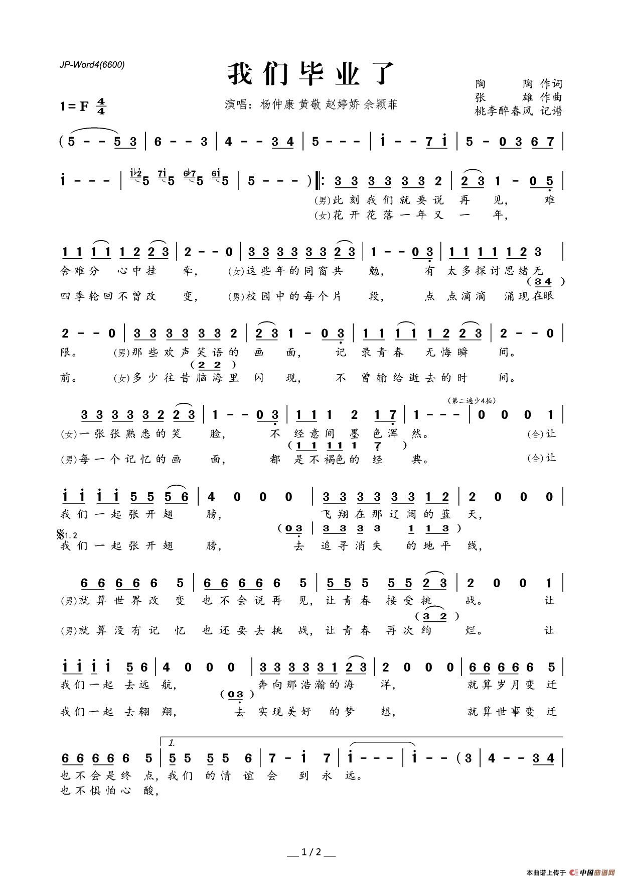 我们毕业了(陶陶词 张雄曲)相关五线谱