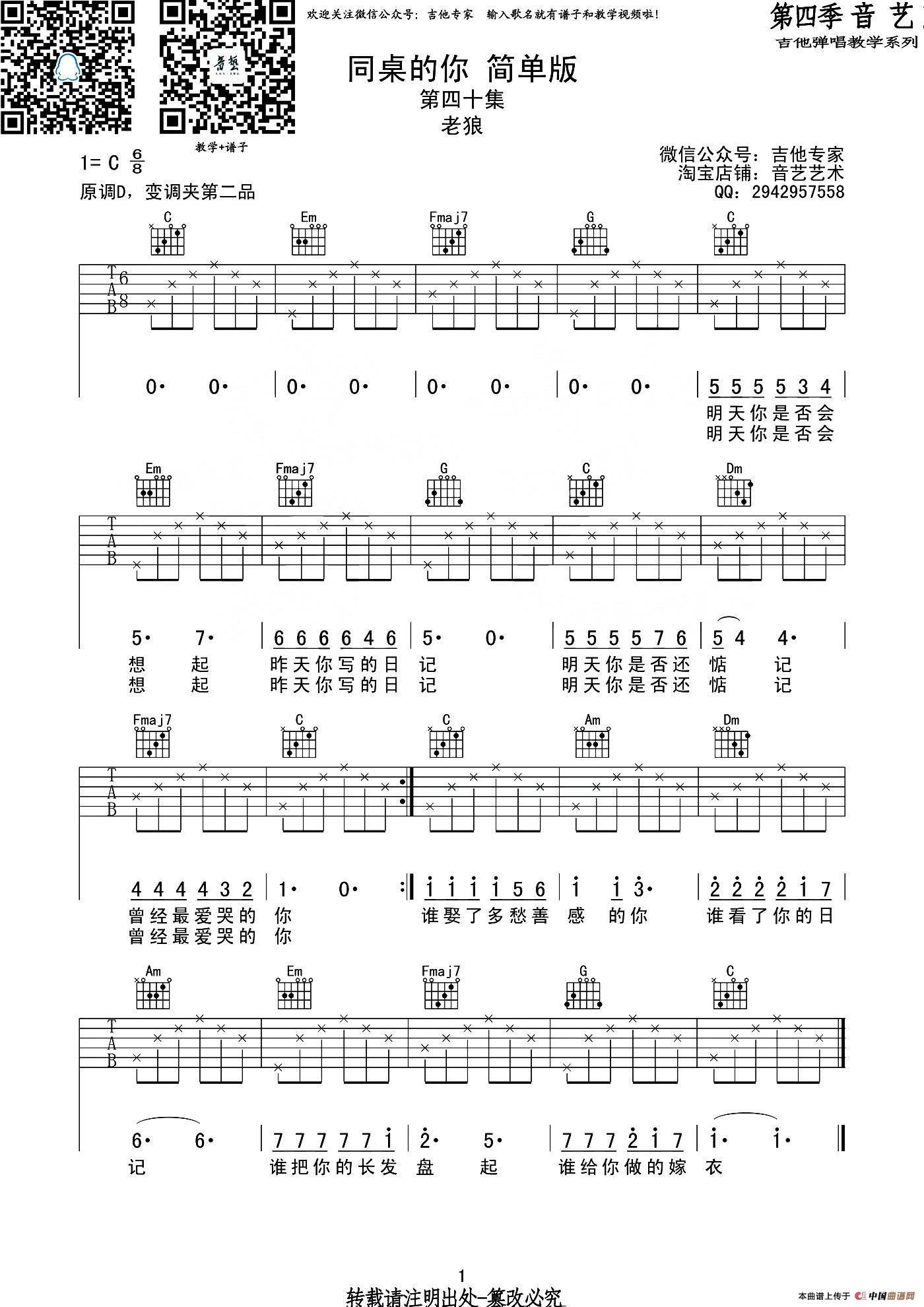 同桌的你(吉他谱简单版)