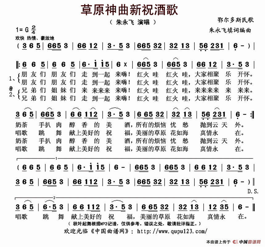 草原神曲新祝酒歌相关五线谱
