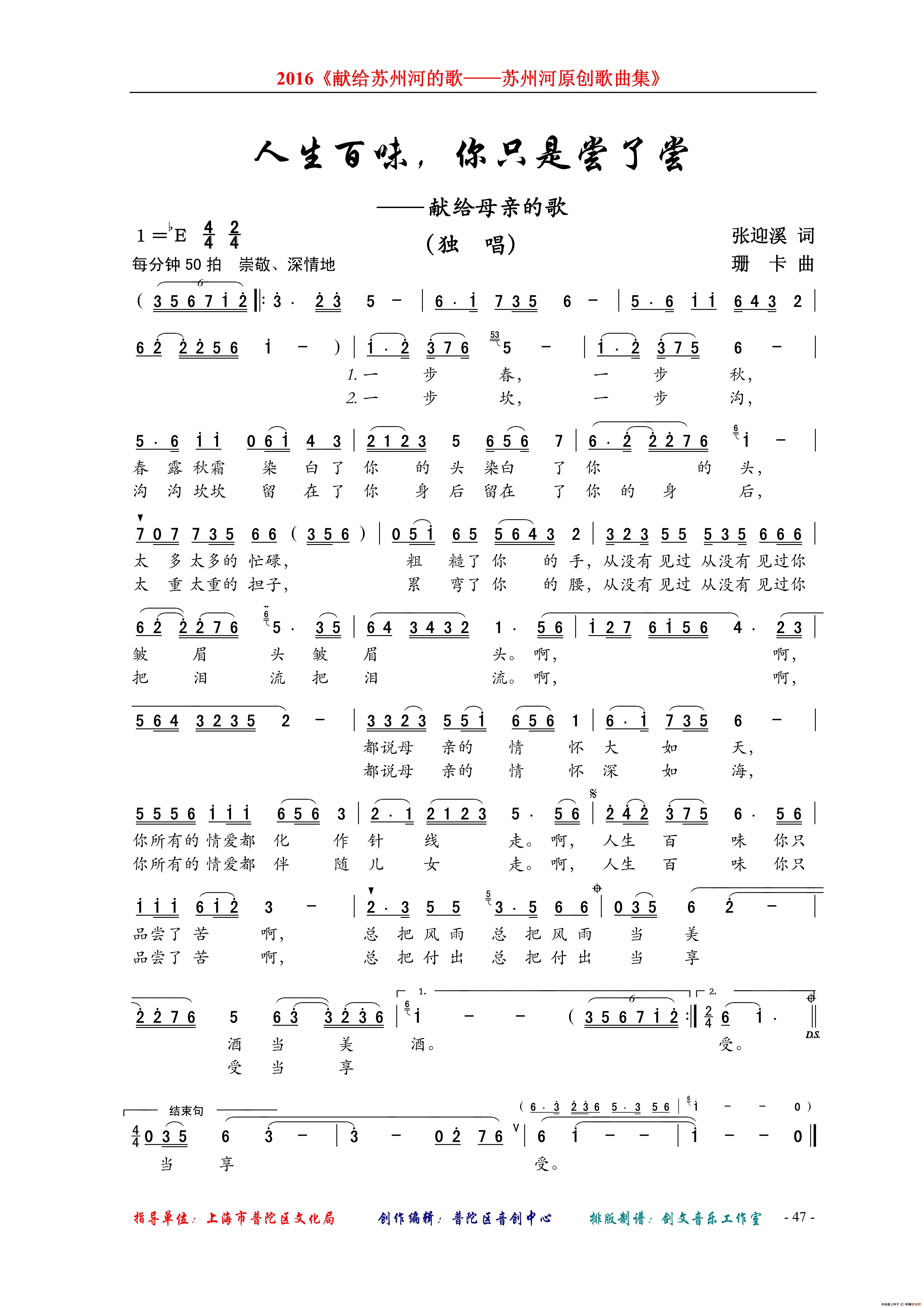 珊卡曲谱推荐我爱丽江水灵灵展现风采快乐不败节约歌谣小河(方流洪词 珊卡曲)失去了才感到珍贵钱江潮(钱建隆词 珊卡曲)在爱的阳光下(21世纪初中国人抗击“非典”的心声)婆婆也是妈(许如忠词 珊卡曲)青铜名片盘锦锦绣万年长苗家娇阿咿酒泉的酒(独唱、伴唱)中国千年棋拉萨的太阳(李官明词 珊卡曲)苗山米酒广安颂生命之水让凯歌唱响四面八方我的成都(独唱、伴唱)西藏行