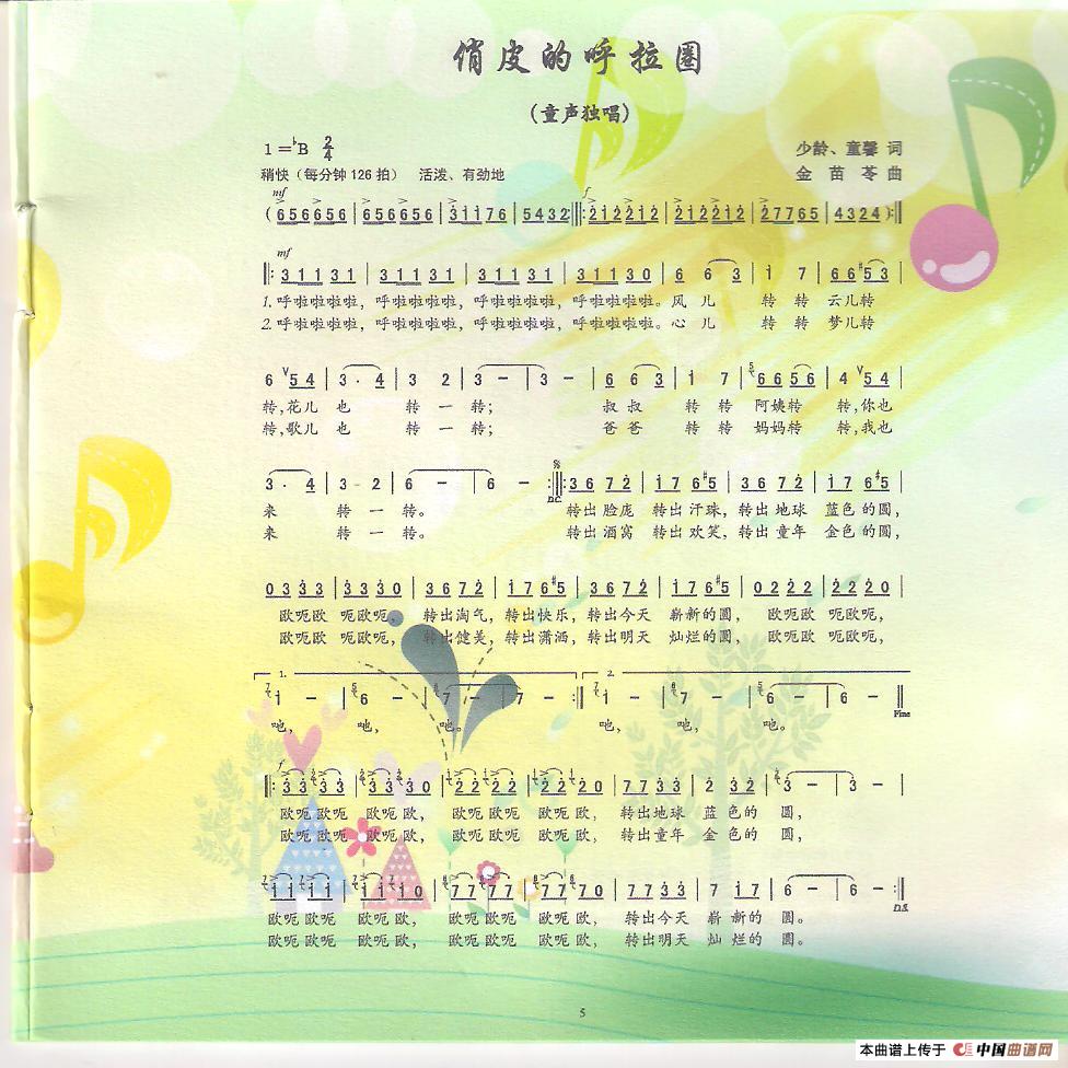 金苗苓曲谱推荐党旗的信仰甜甜的哩(许德清词 金苗苓曲、童声独唱)有趣的梦(童声小组唱)朝鲜族人民心向共产党/最可爱的人魂归故里(独唱)啊,摇篮(崔云良词 金苗苓曲)邻里处处艳阳天(女声合唱)呵护你,小树苗(男女声重唱、对唱)年轻的伙伴,你为什么这样欢乐(青年歌曲)千千万万慈善让中国更美丽(男女声二重唱)小山坡苏河湾蔚蓝色的军礼(朱积聚词 金苗苓曲、二重唱)我爱太阳,我爱月亮(少年歌曲)永远的黄自(女声二部合唱)手拉手,向前走(汤昭智词 金苗苓曲、童声齐唱)抗日精神颂(独唱)比萨饼的童话遥远的问候(男高音独唱)爱情天都峰
