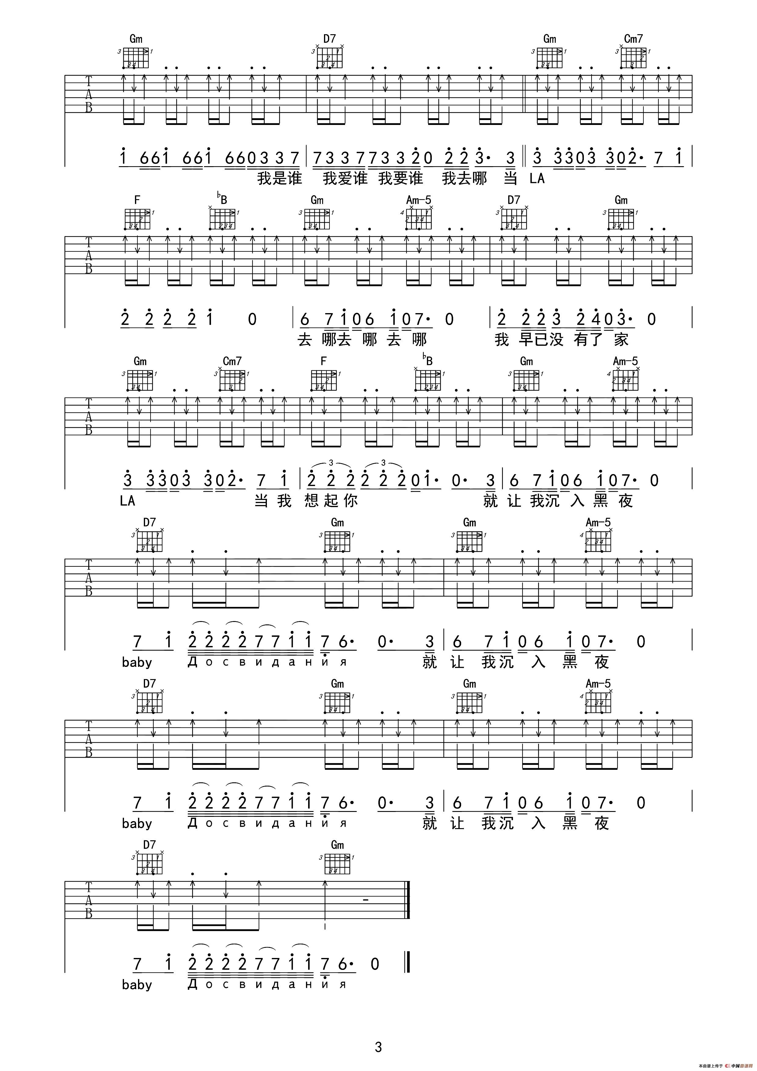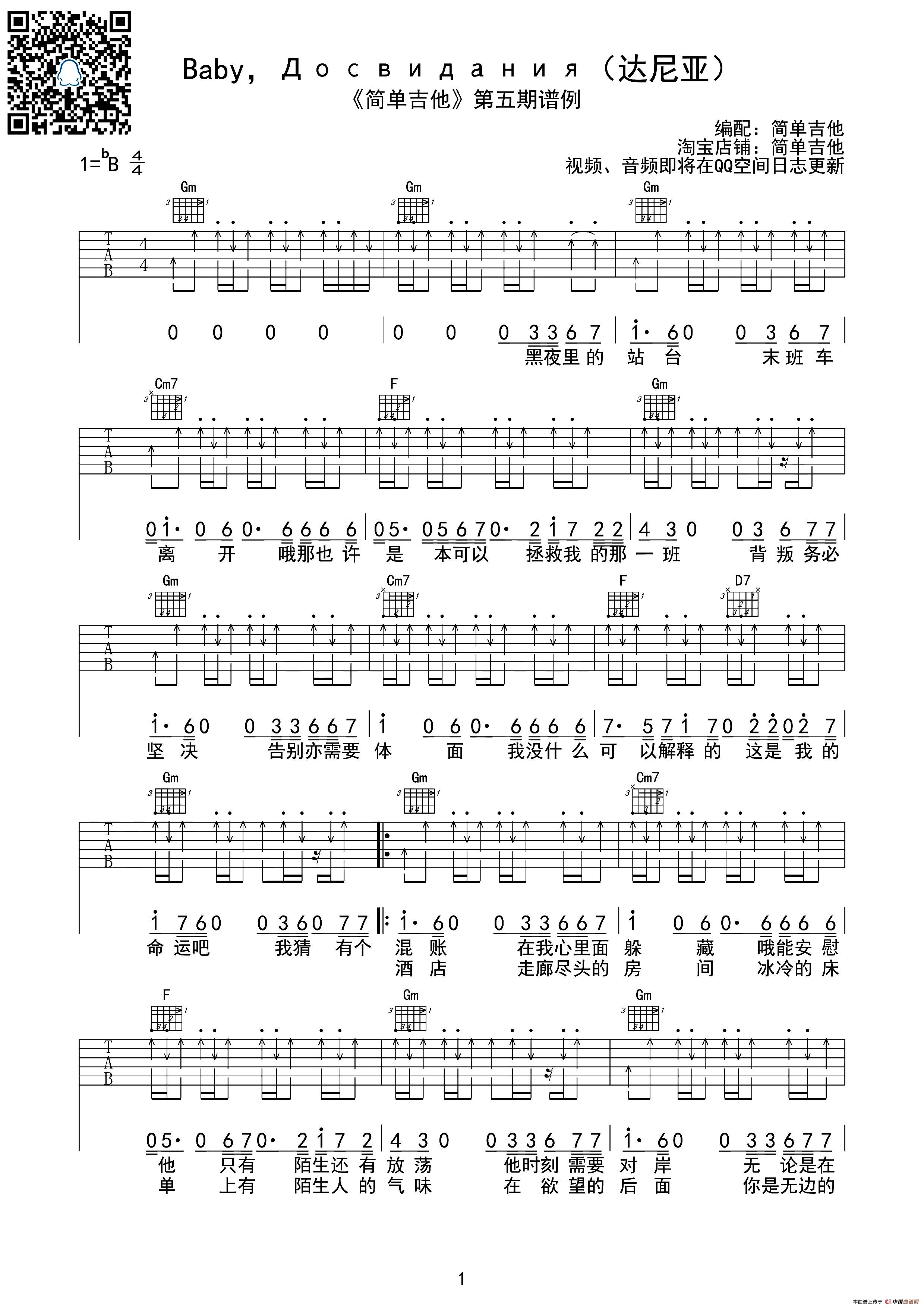 Baby До свидания(达尼亚)(吉他六线谱)