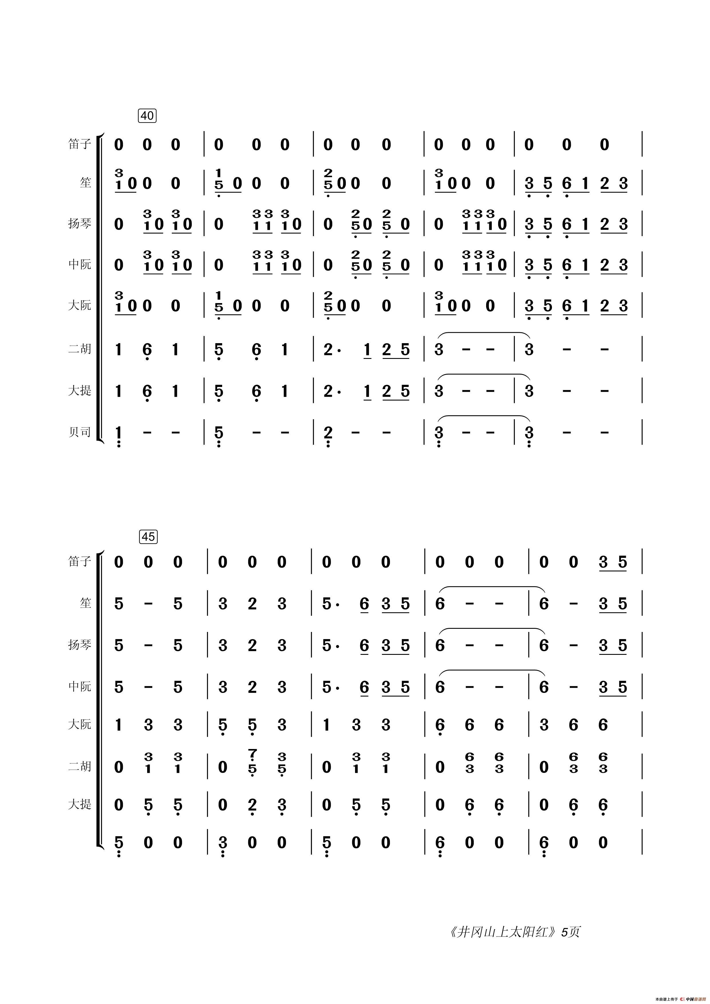 井冈山上太阳红(民乐合奏总谱)相关五线谱