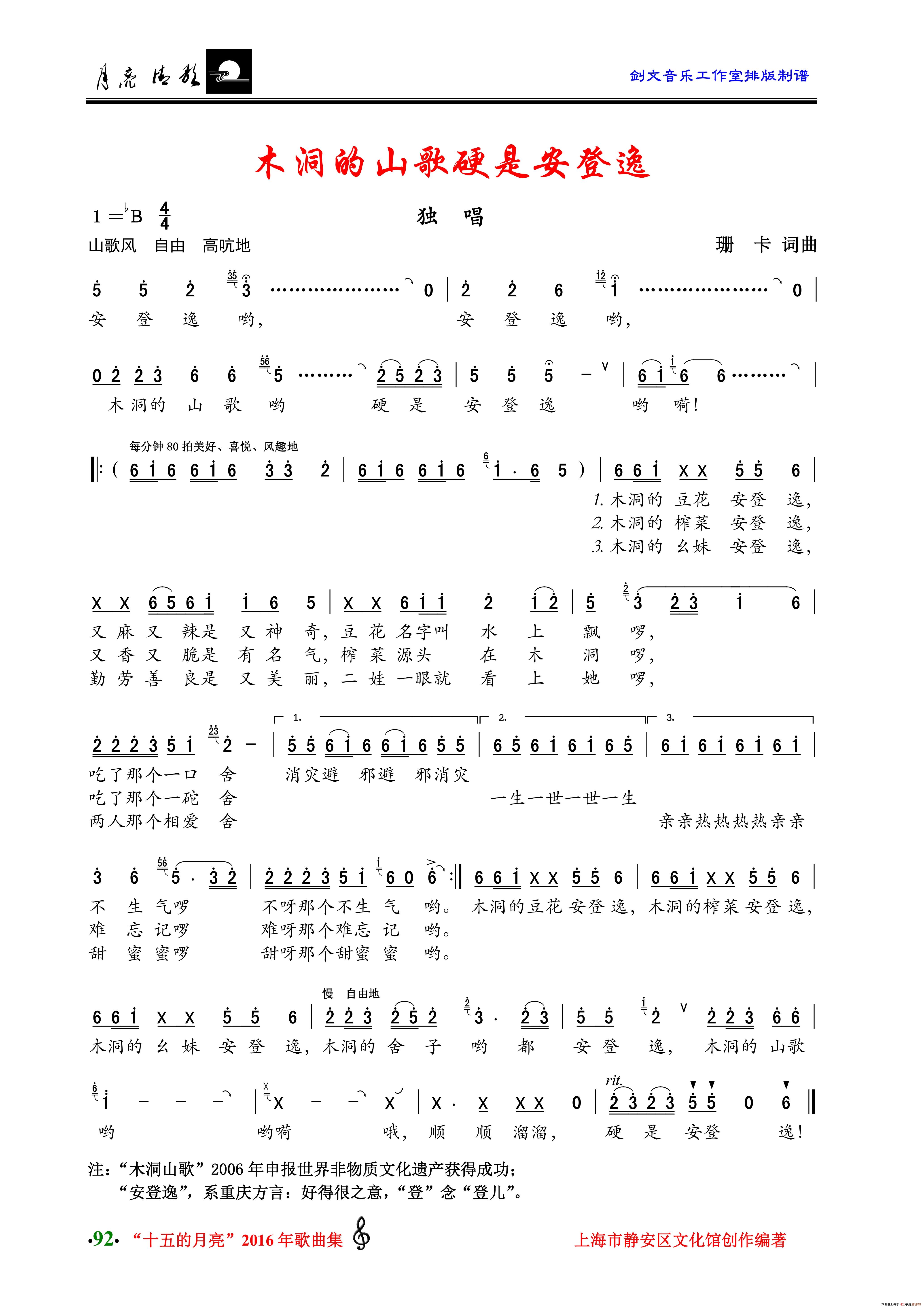珊卡曲谱推荐快乐天堂(陈一军词 珊卡曲、合唱)爱水歌中国 春意浓我的家园美如画(贾立夫词 珊卡曲)志愿者之歌(欧阳胜词 珊卡曲、二重唱)五十六根琴弦连北京这一双手(张海、樊荣词 珊卡曲、独唱+伴唱)社区是个大家庭祖国恋歌(吕永清词 珊卡曲)小城的早晨(汪宇明 刘忠伟词 珊卡曲)望江南(张海词 珊卡曲)非常的你——献给玉树抗震救灾的人们共产党人(陈树词 珊卡曲)失去了才感到珍贵夔门雄风大陈之歌人这一辈子向往西藏(邵永强词 珊卡曲)母亲河的呼唤我的梦 你的梦(马强词 珊卡曲)