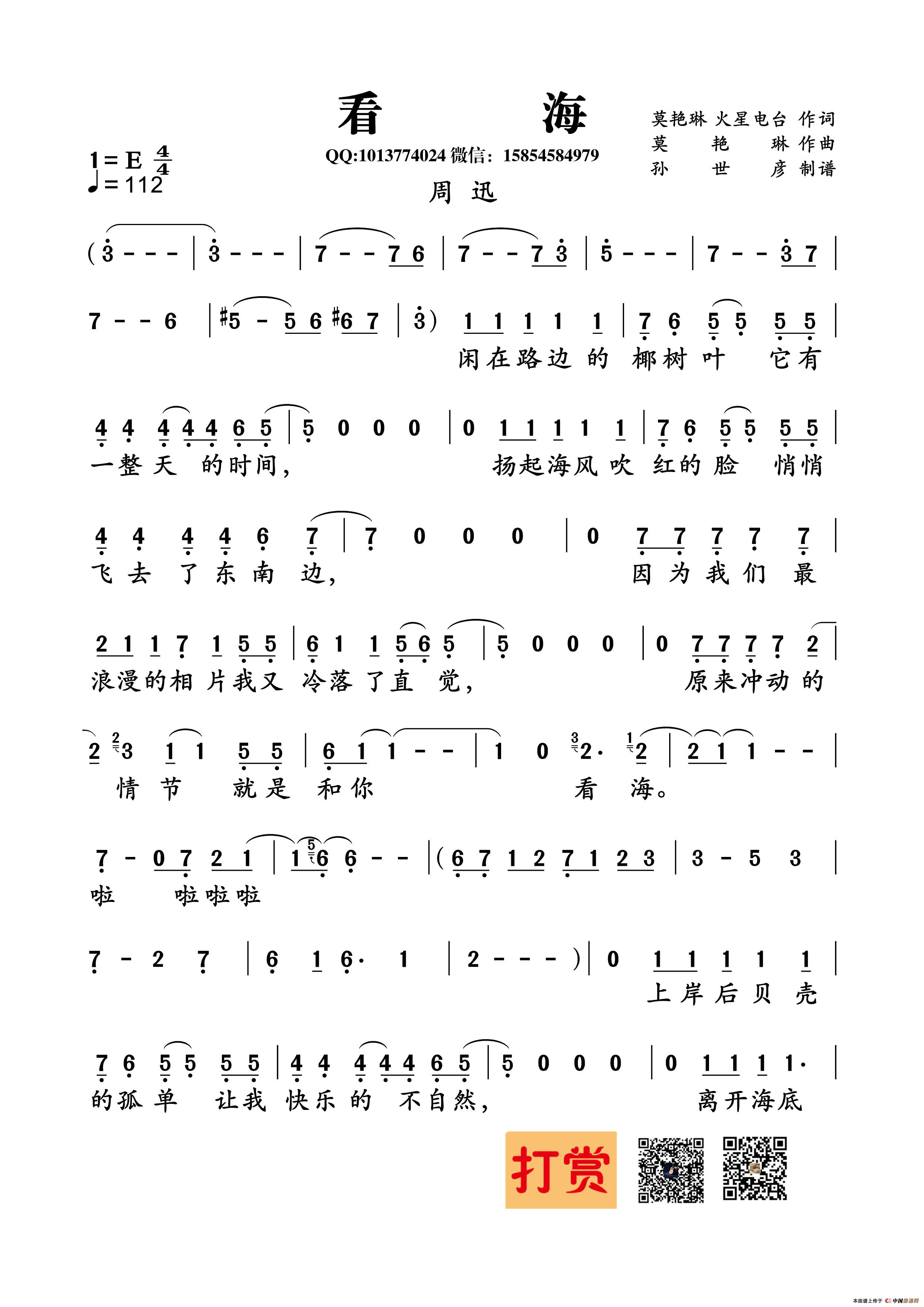 看海(莫艳琳 火星电台词 莫艳琳曲)相关五线谱