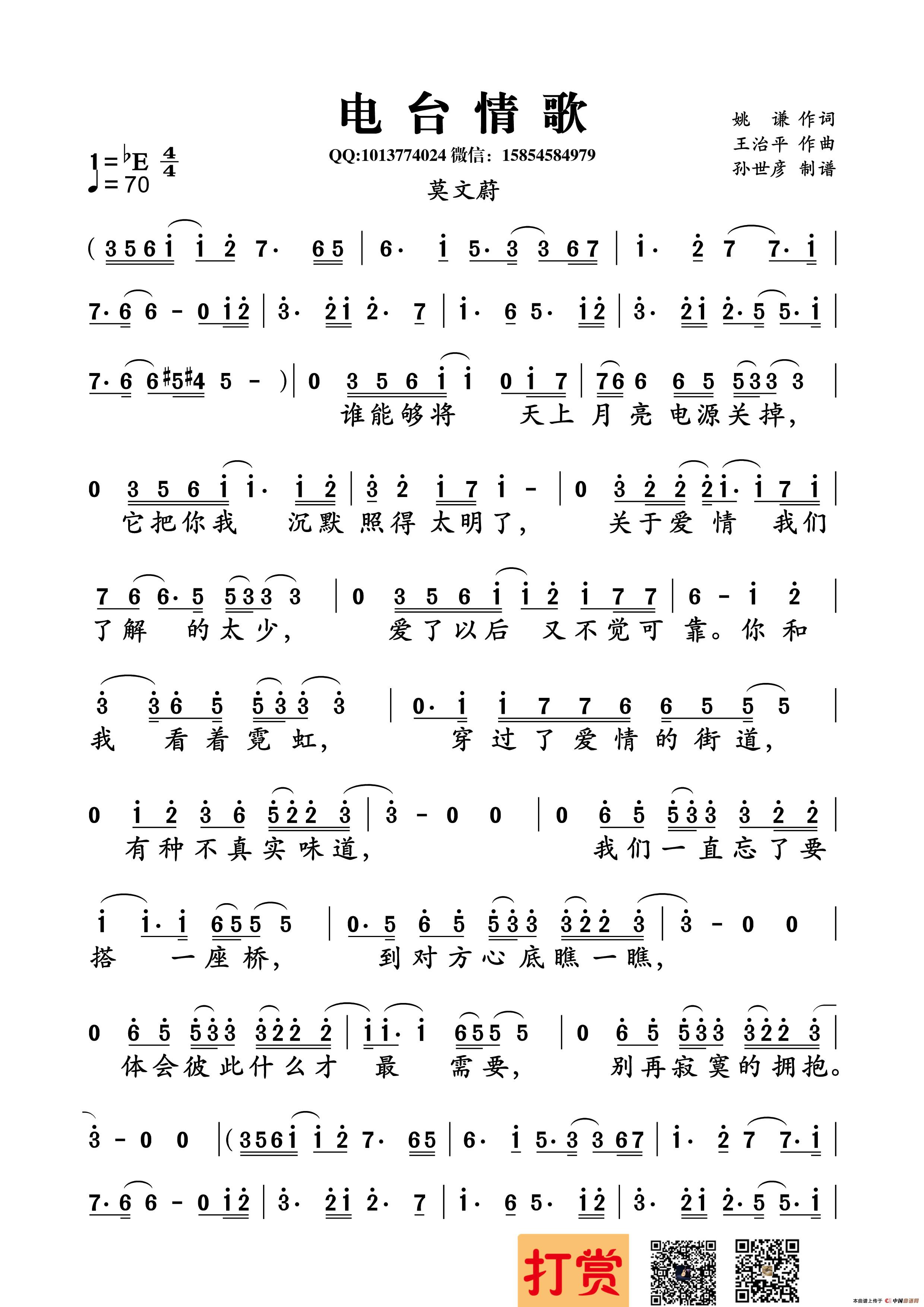 电台情歌相关五线谱
