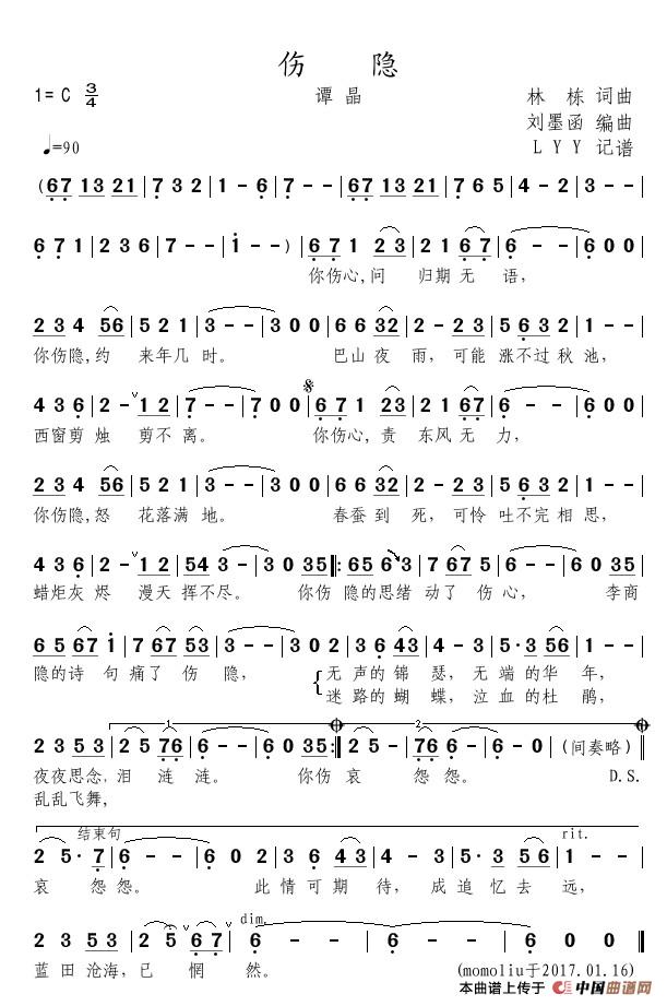 伤隐相关五线谱
