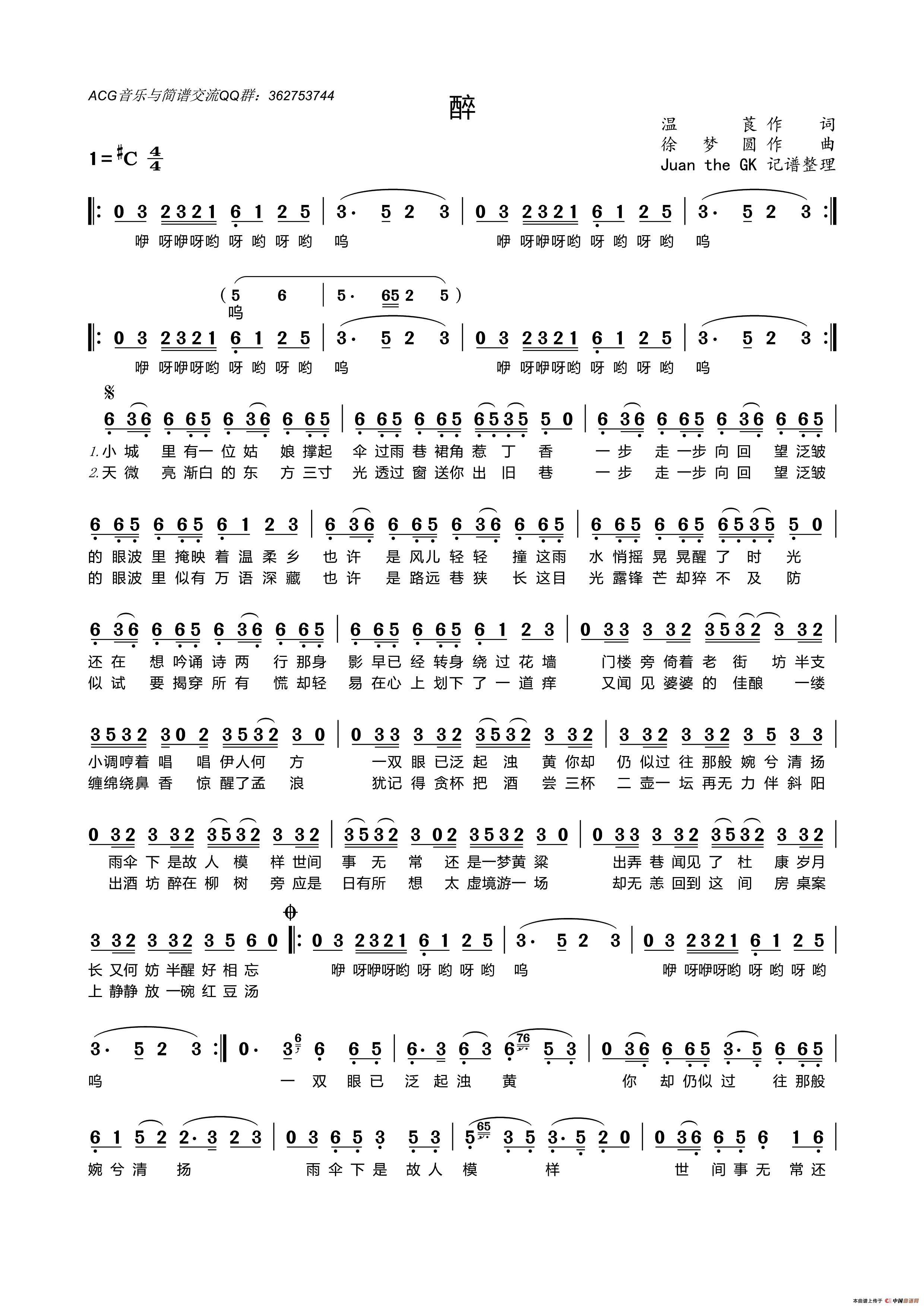 醉(温莨词 徐梦圆曲)相关五线谱