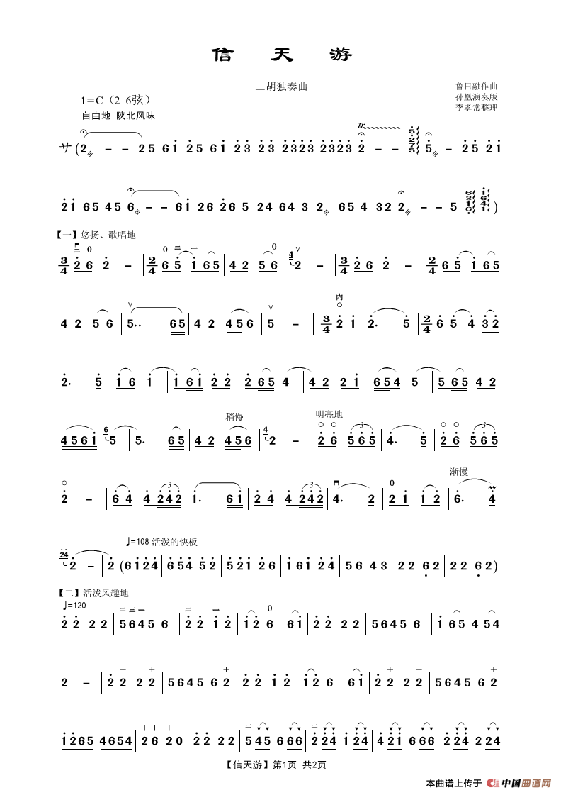 信天游(二胡独奏曲)