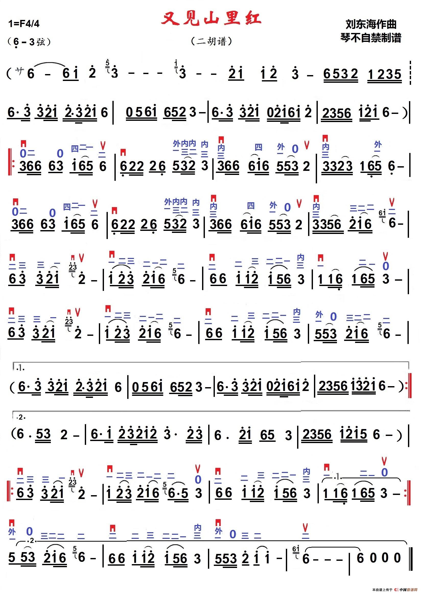 又见山里红(二胡独奏)相关五线谱