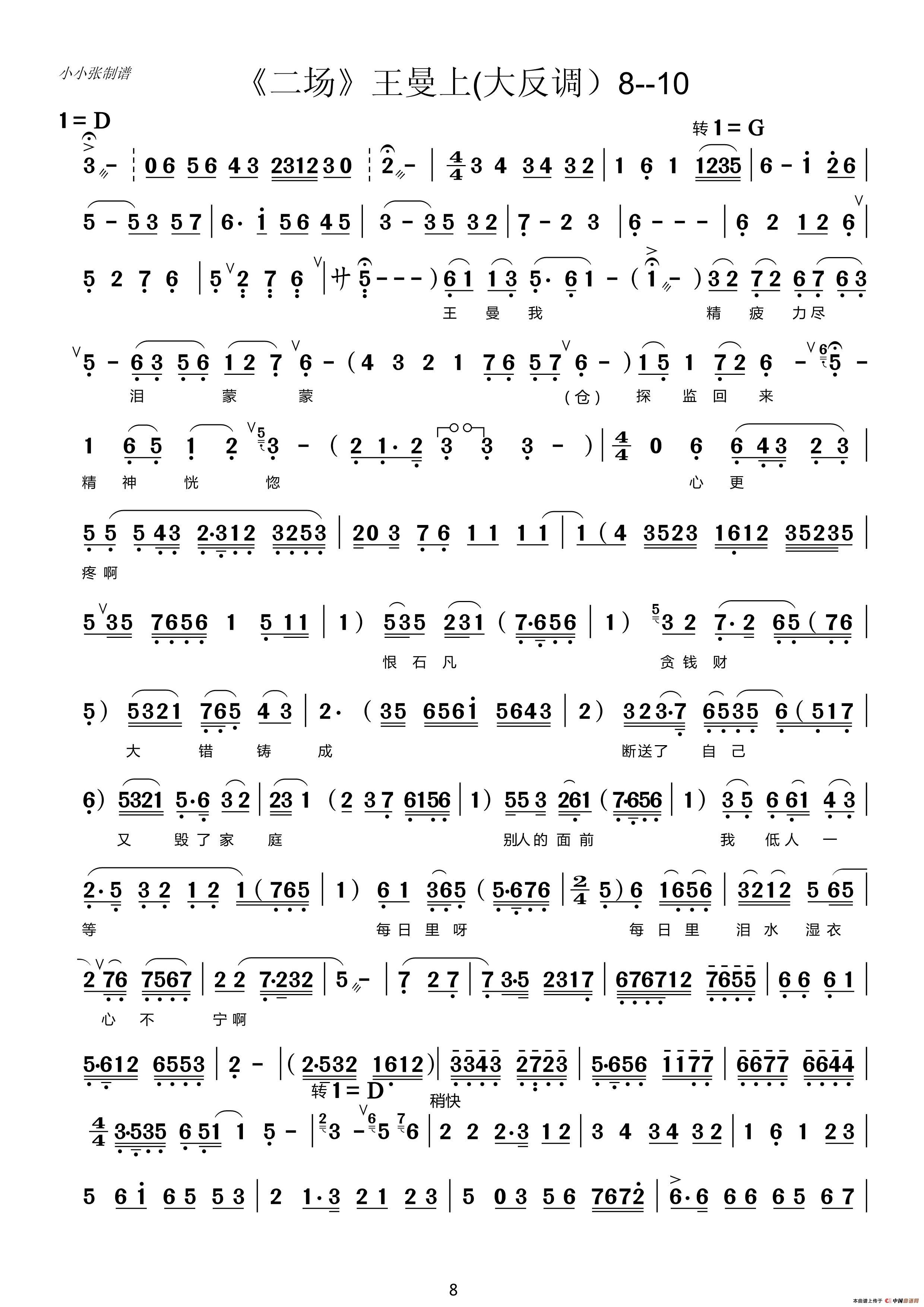 反腐倡廉(评剧《中秋泪》第二场王曼(大反调))相关五线谱