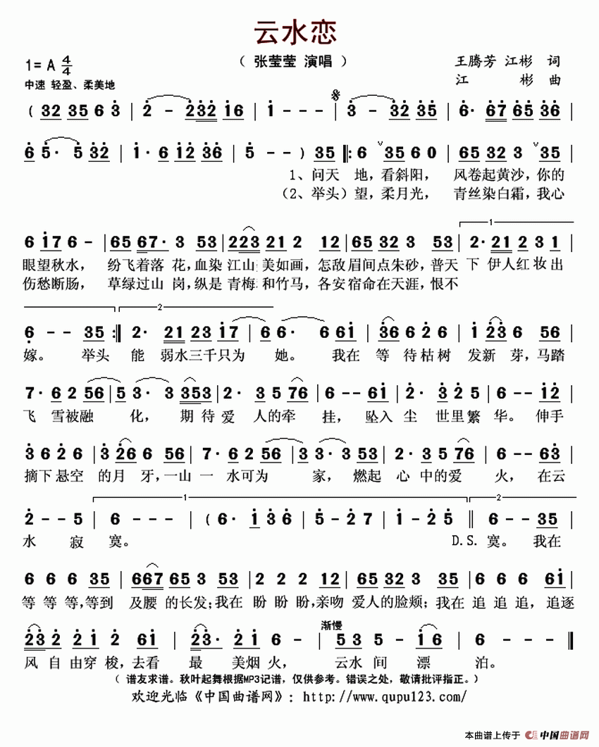 云水恋相关五线谱