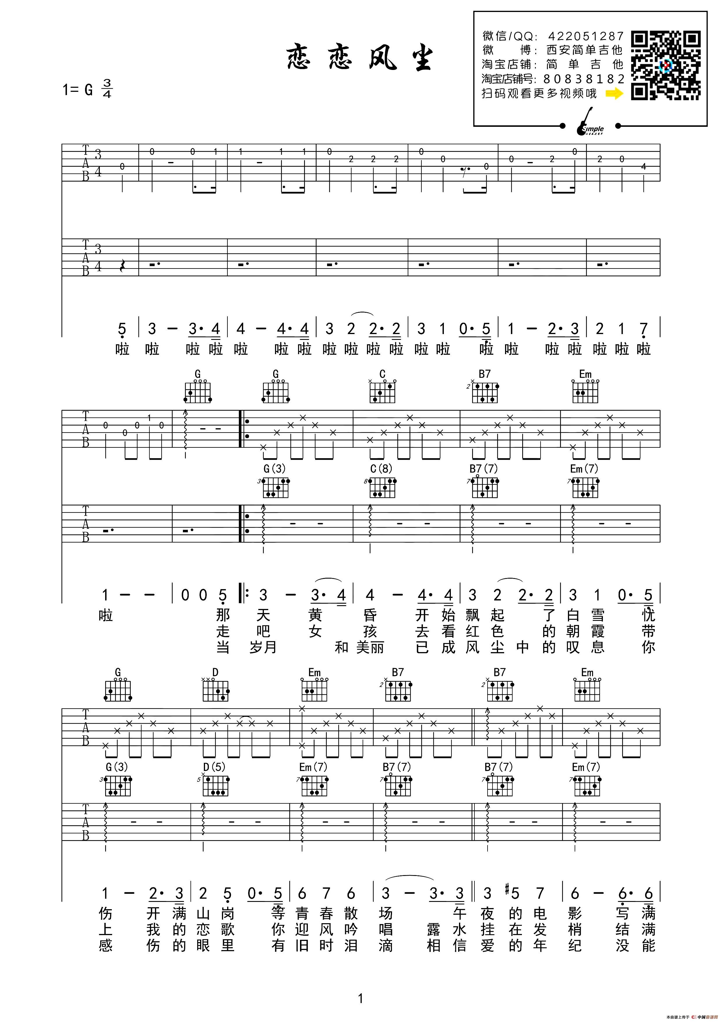 烟火里的尘埃 华晨宇 吉他谱(无限延音编配)