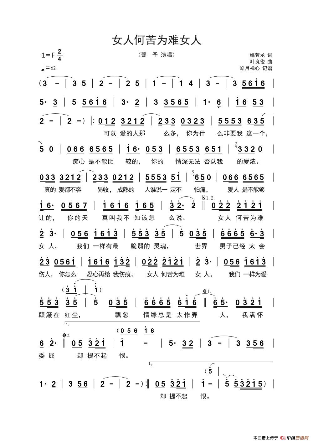 女人何苦为难女人(馨予演唱版)相关五线谱