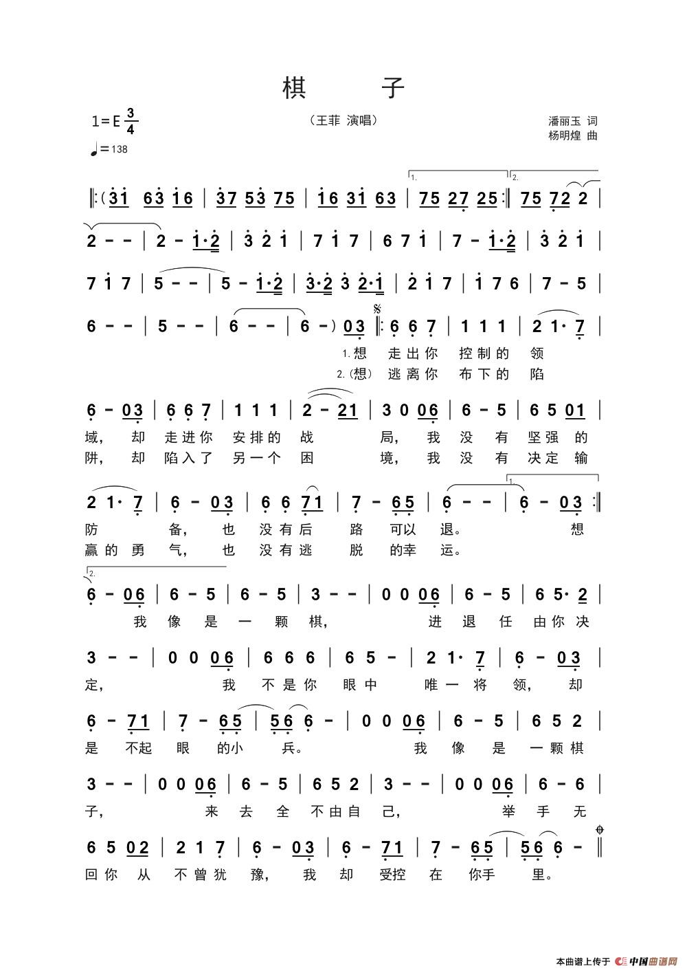 棋子相关五线谱