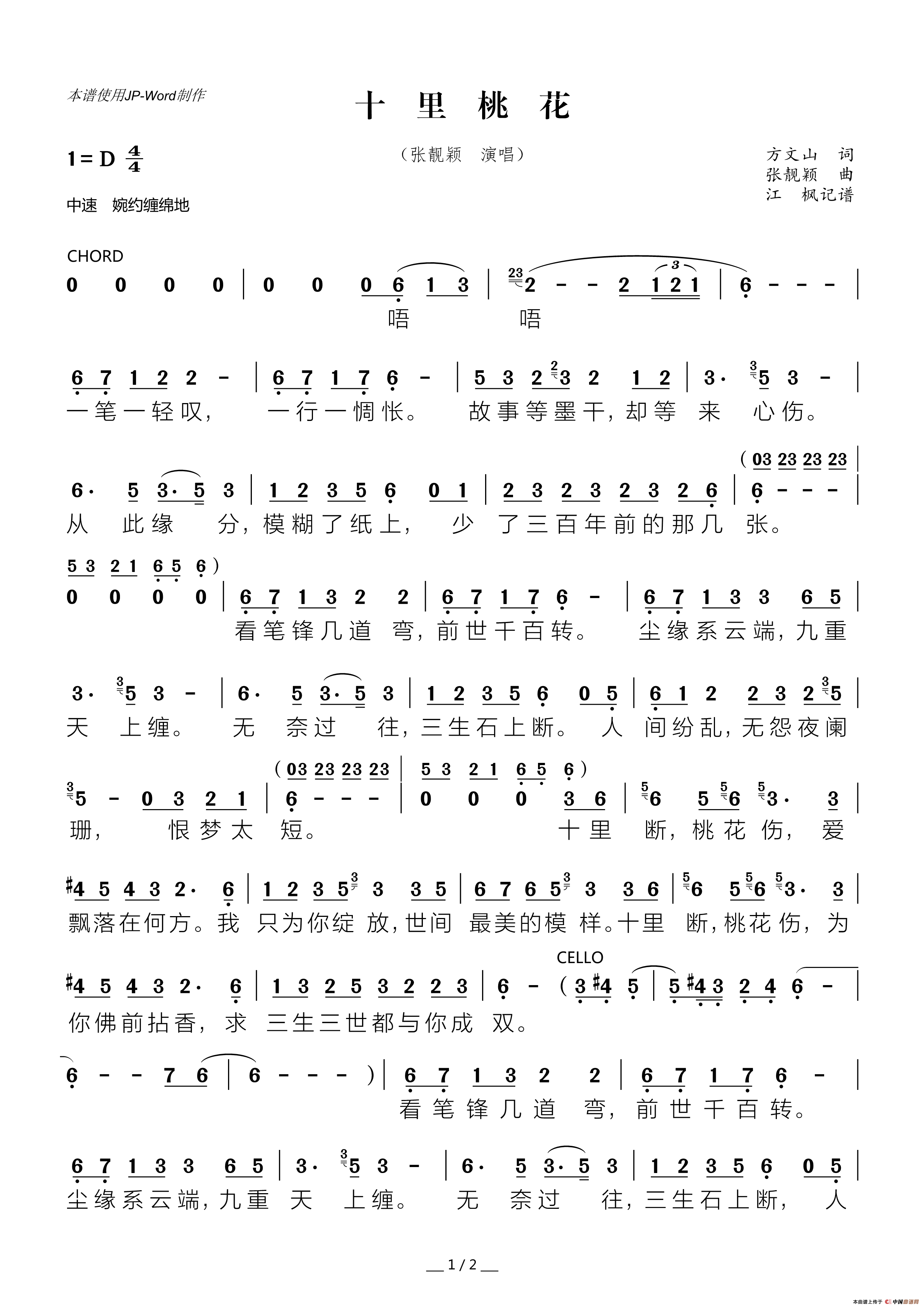 十里桃花相关五线谱