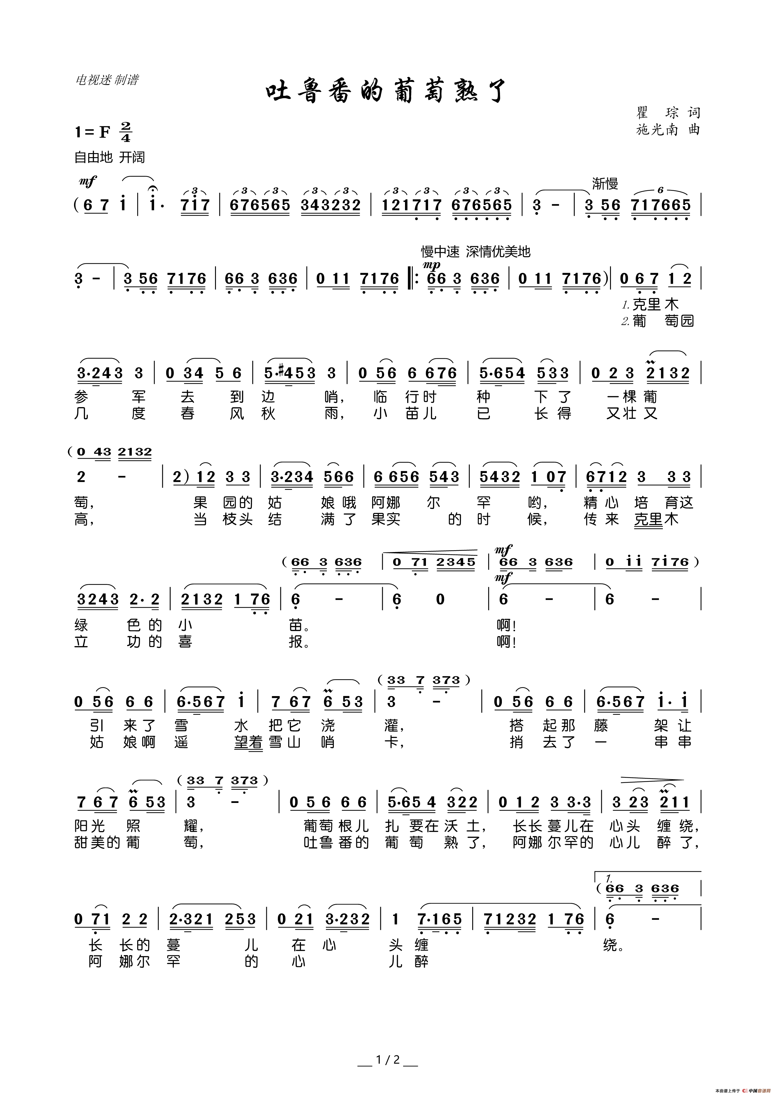施光南曲谱推荐最美的赞歌献给党(韩伟词 施光南曲)月光下的凤尾竹(葫芦丝)军功章里看丰收在希望的田野上京族渔歌打起手鼓唱起歌勿忘我(彭丽媛演唱)我爱妈妈的眼睛多情的土地(任志萍词 施光南曲)打起手鼓唱起歌把心儿贴着祖国南来北往的思念灿烂的明天在哪里校园多美好月光下的凤尾竹(葫芦丝独奏-降B调)林中的小鸟在歌唱(电影《海上升明月》插曲)当牛皮鼓敲响的时候在希望的田野上(总谱)九寨沟风光令人醉(叙事套曲《传奇的绿宝石》之一)祝酒歌(韩伟词 施光南曲、中英文对照版)