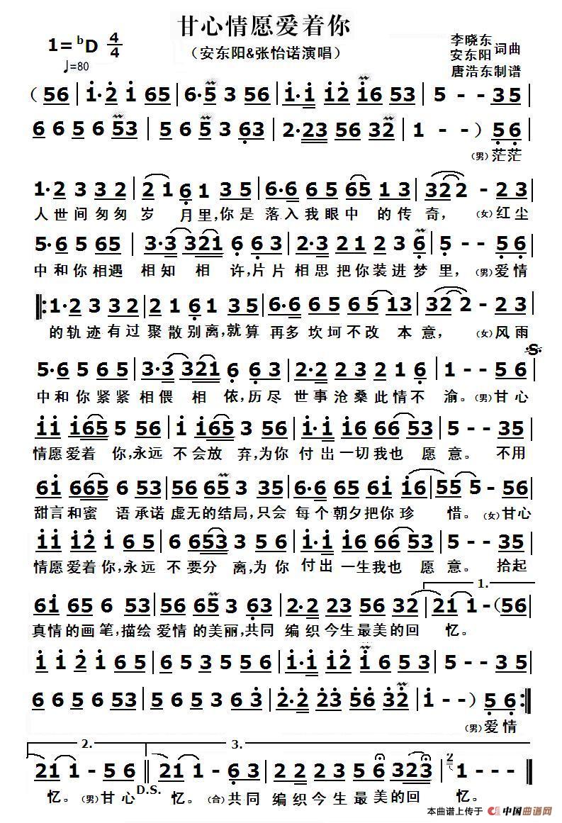 甘心情愿爱着你相关五线谱
