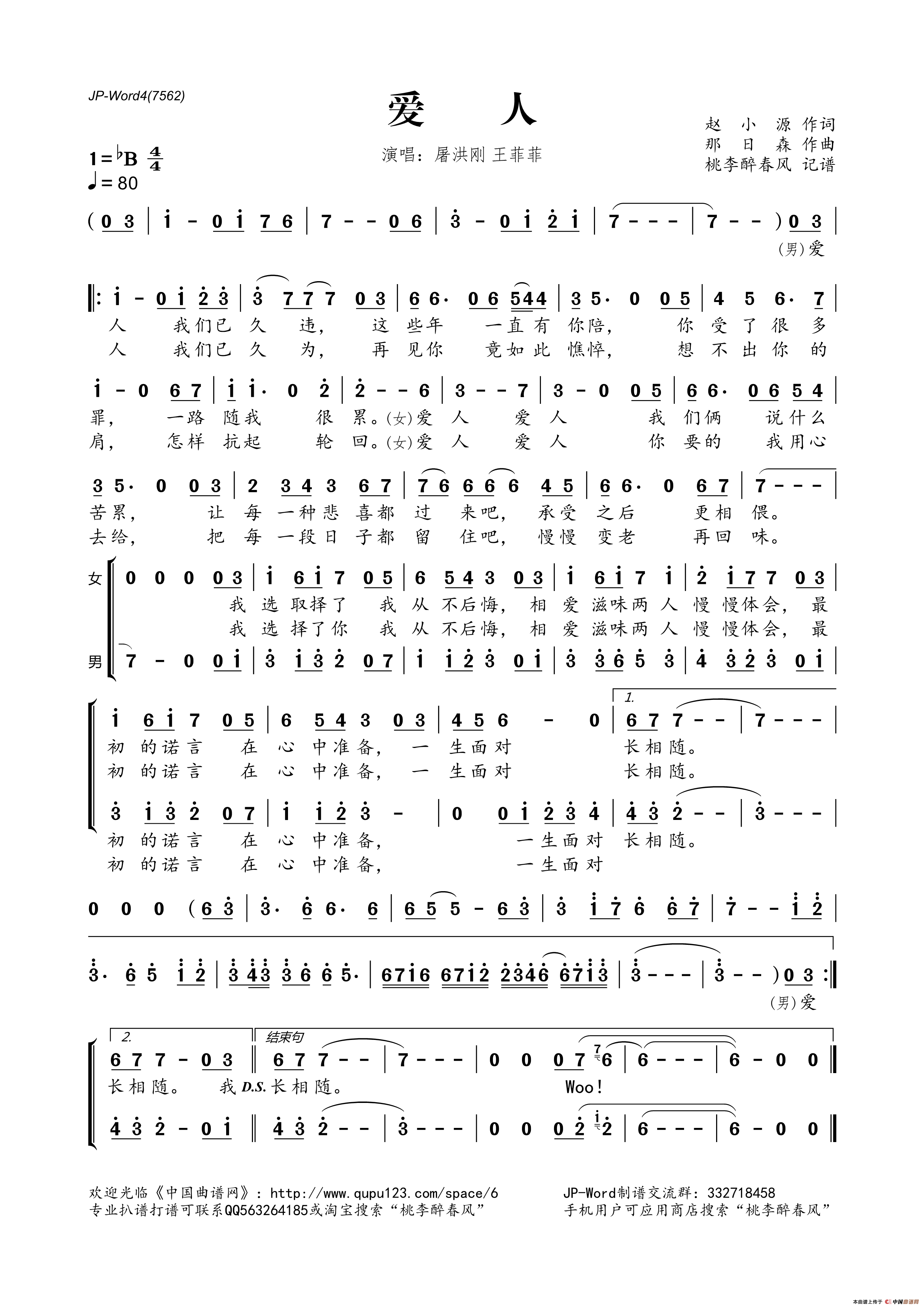 爱人(赵小源词 那日森曲)相关五线谱