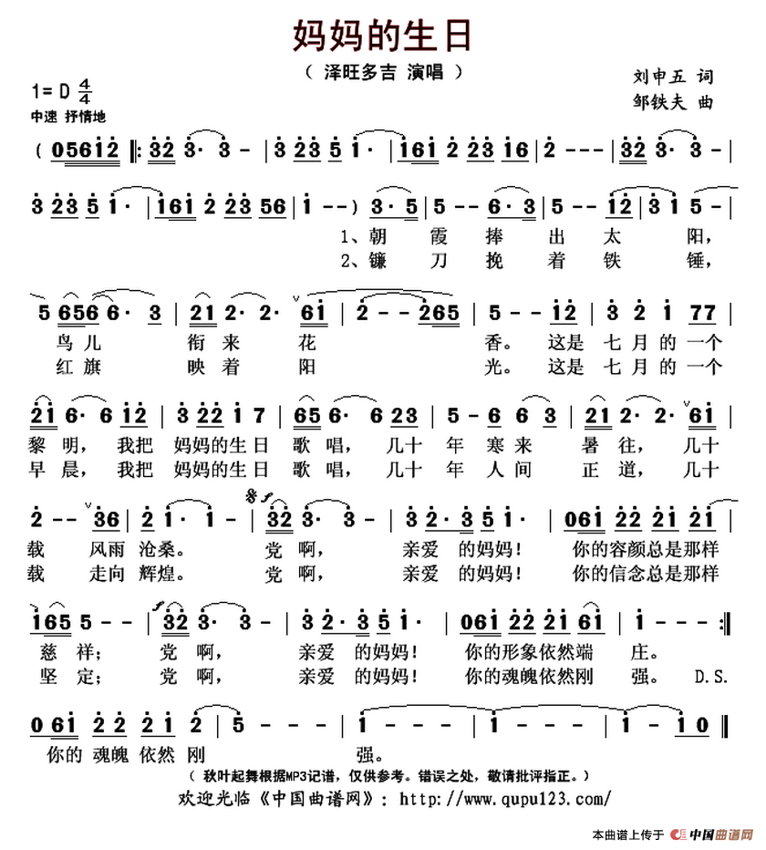邹铁夫曲谱推荐妈妈从我梦中走来(石祥词 邹铁夫曲)妈妈从我梦中走来美人如玉(聂启明词 邹铁夫曲)春满园(聂启明词 邹铁夫曲)大中华(赵大新词 邹铁夫曲)妈妈从我梦中走来(大字老人适用)美人如玉(聂启明词 邹铁夫曲)金色的油菜花美丽海南(赵大新词 邹铁夫曲)迎盛世举金杯(又名:迎盛世 举金杯)她之歌(徐霞)大中华(赵大新词 邹铁夫曲)