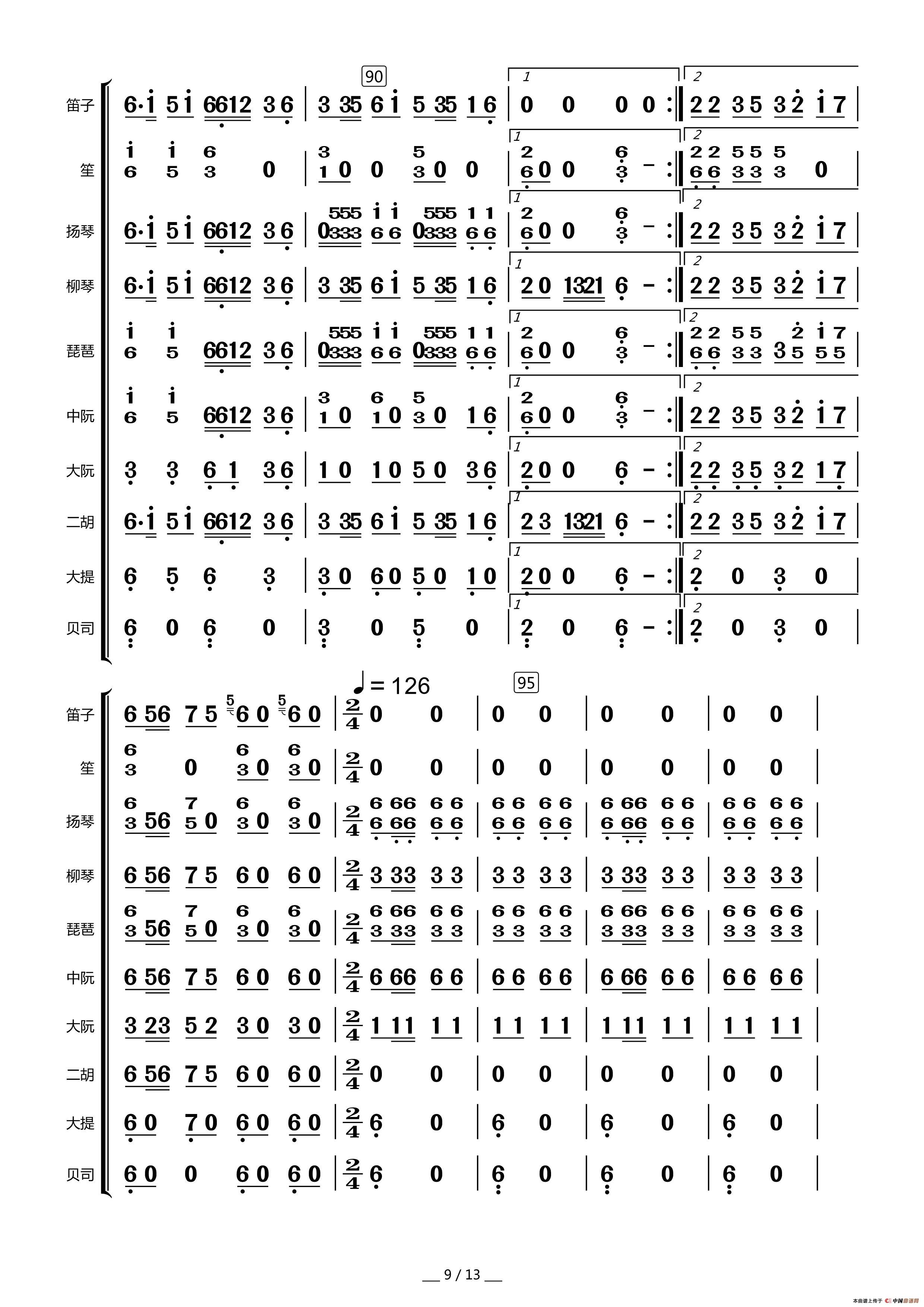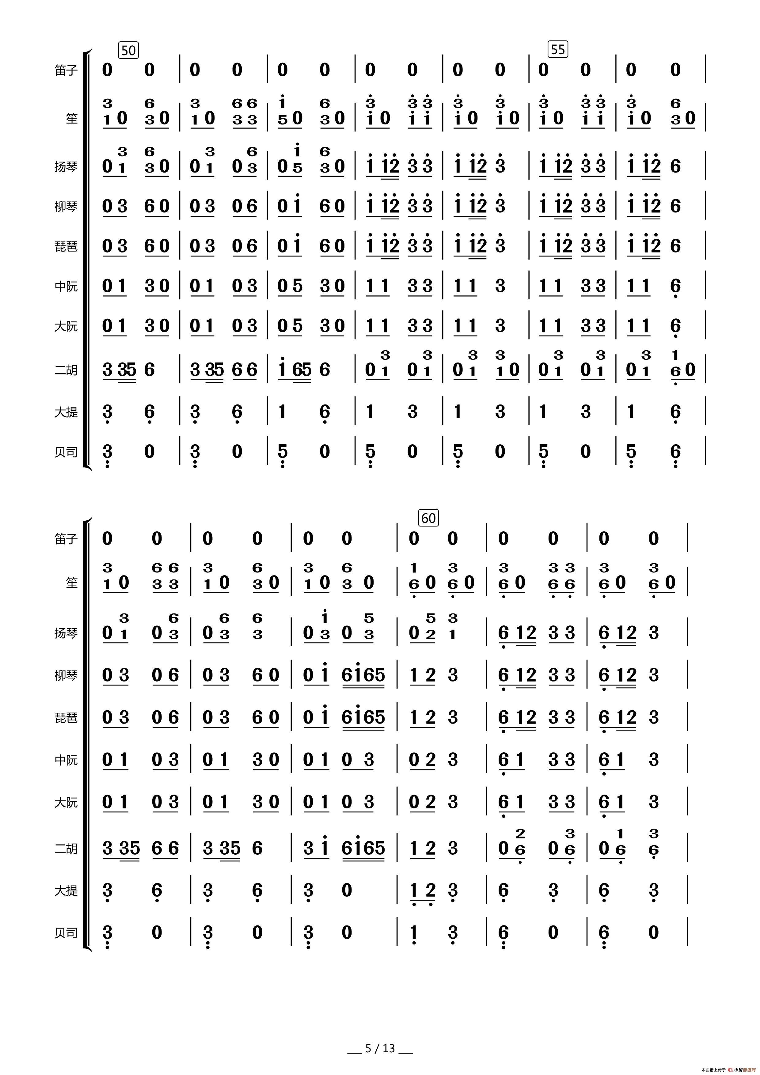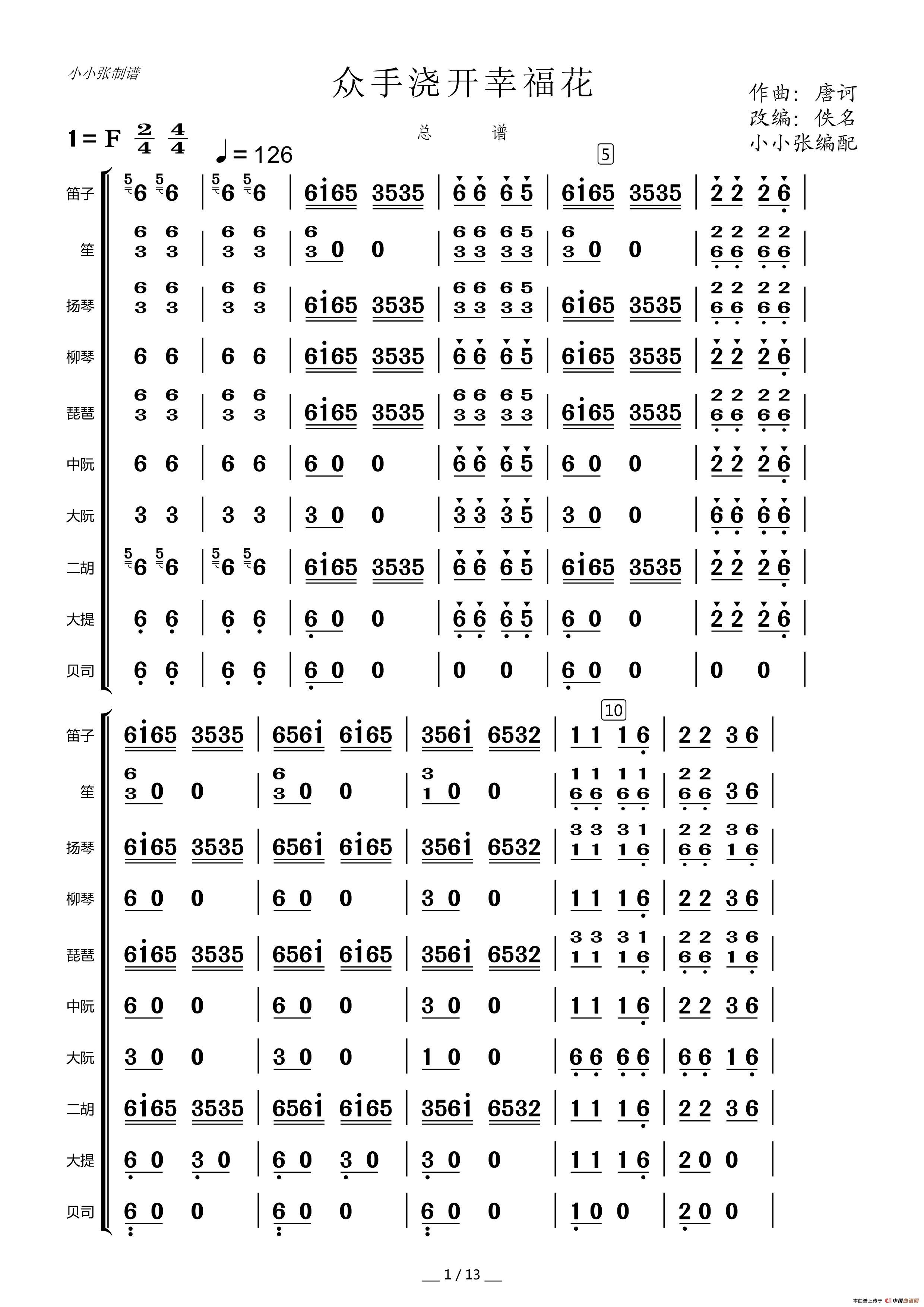众手浇开幸福花(民乐合奏总谱)相关五线谱